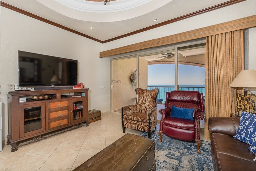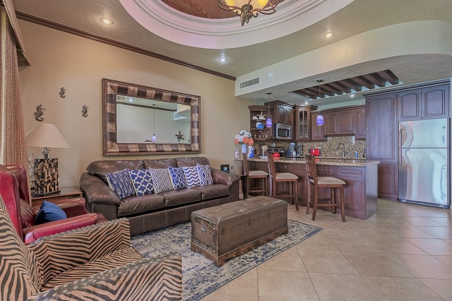 ****PENTHOUSE**** This beautiful unit is only one of two 1-bedroom penthouse suites located in the newest and most luxurious resort in Puerto Peñasco, the Sonoran Sky. This gorgeous unit has a 10-foot ceiling dome with a small skylight. Both the living room and kitchen have patio views of the lovely Sea of Cortez. This one-bedroom suite has everything. The bedroom has a king-size bed, large flat screen SMART television, and DVD player. There is matching rustic furniture including headboard, six drawer dresser, and nightstand.