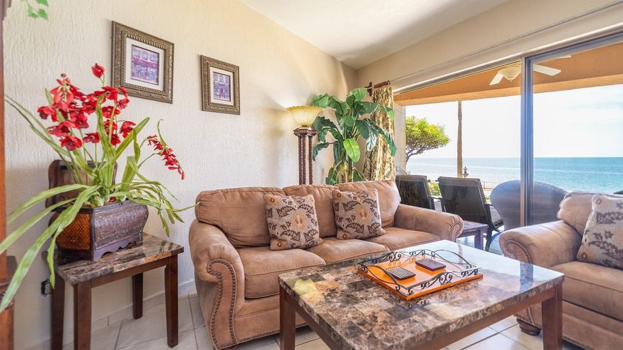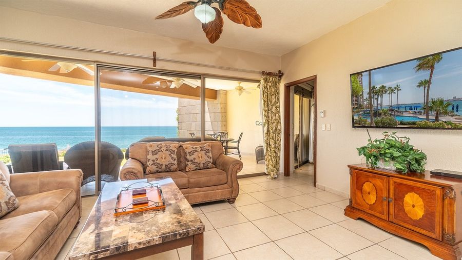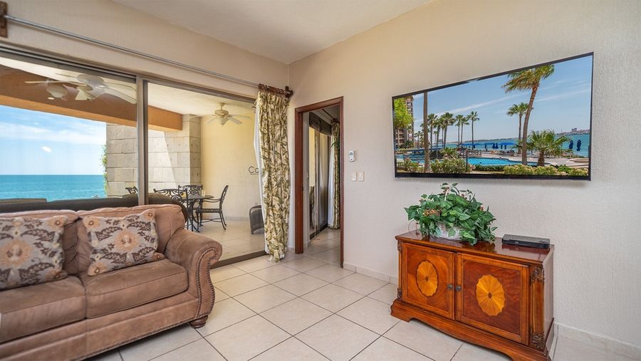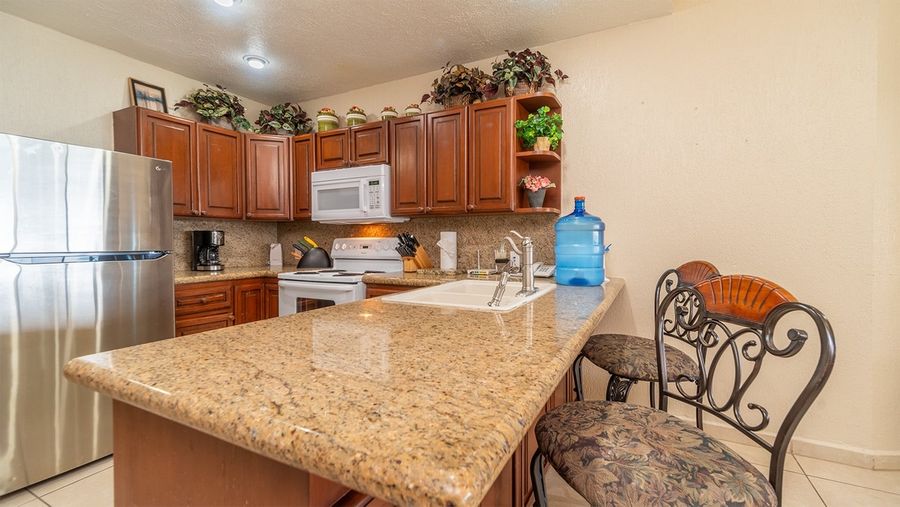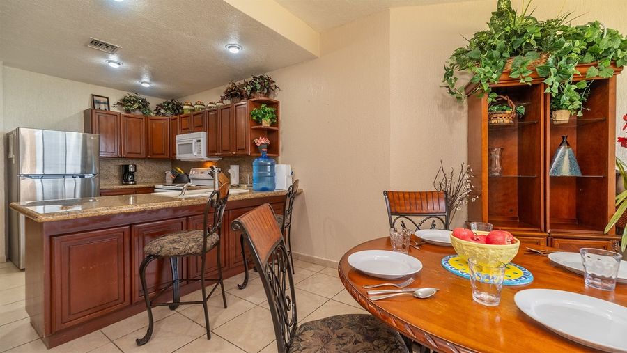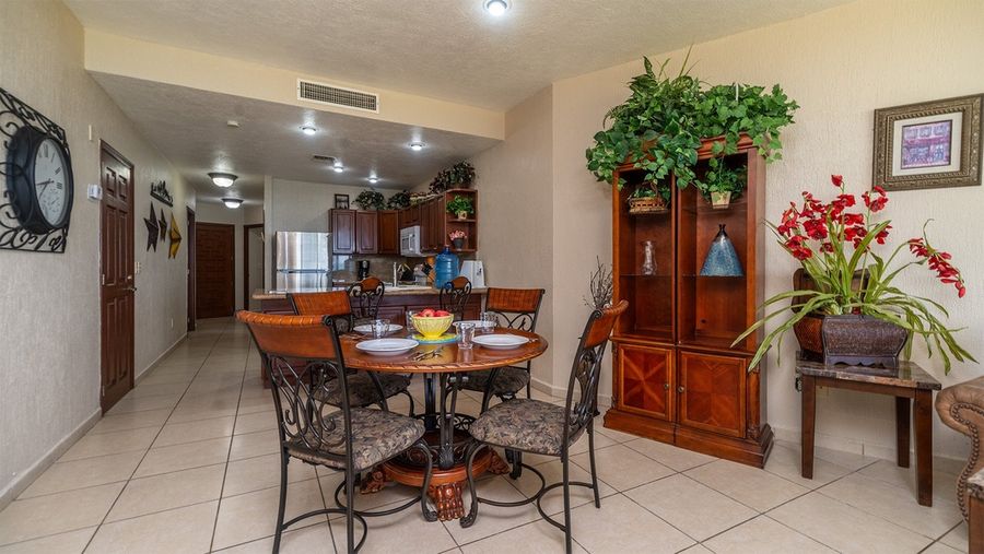 Sonoran Sun West 102 – Your Oceanfront Paradise Awaits This 2-bedroom, 2-bathroom ground-level unit in the Sonoran Sun Resort is the perfect retreat for a relaxing beachfront vacation. Located on the 1st floor of the West Tower, you’ll be just steps away from the stunning Sandy Beach and all the luxurious amenities this oceanfront resort has to offer. Resort Amenities: Beachfront Swimming Pools Jacuzzis Tennis Courts & BBQ Areas Full-Service Spa & Fitness Center Restaurant & Bar Convenience Store Comfortable Living & Dining Spaces: Living Room: The beautifully furnished living room features a soft green sofa and love seat, complemented by dark wood end tables and a low-profile coffee table. Surrounded by lush tropical plants and a palm tree Tommy Bahama rug, this space exudes a relaxed island vibe. Sliding glass doors open to the patio, letting in plenty of natural light. Dining Area: The breakfast bar with wrought iron and wood bar stools is perfect for casual meals or evening cocktails. There’s also a glass-top dining table for six on the patio for those outdoor dining moments. Fully Equipped Kitchen: White-on-white appliances: Built-in microwave, oven, self-cleaning stove, dishwasher, and refrigerator. Granite countertops with plenty of prep space for cooking and entertaining. Purified drinking water cooler, coffee maker, blender, and toaster are provided for your convenience. Fully stocked with silverware, plates, pans, and utensils. Peaceful & Comfortable Bedrooms: Master Bedroom: A beautiful birch-colored king-size bed with a fluffy pillow-top mattress and cream-colored bedding. The suite includes an 8-drawer dresser with a mirror, a separate dresser with a TV, and a bedside table with a lamp. The huge closet with full-length mirrored doors offers plenty of storage. Master Bathroom: A marble shower and tub combo with rustic brass fixtures and a double-sink vanity with ample counter space and lighting. Second Bedroom: Features a wood-framed king-size bed with palm tree-patterned bedding, a bedside table, and a TV with a DVD player for in-bed movie nights. Second Bathroom: Features a cultured marble vanity with a single sink and ample counter space. Stunning Outdoor Living: Patio: A spacious patio with a glass-top dining table for six and a love seat porch swing, perfect for sunset dining or unwinding after a day on the beach. The first-floor location means no elevators or stairs—just steps to the sand and surf! Outdoor Comforts: Ceiling fans throughout the unit for added comfort and a washer and dryer for your convenience. Your Dream Beach Vacation Starts Here: Unit 102 at Sonoran Sun Resort offers the perfect combination of luxury, comfort, and convenience, with everything you need for a memorable stay. From the tropical-themed décor to the gorgeous oceanfront views, you’ll find it hard to leave this beautiful retreat. Book Your Stay Now: Don’t wait—reserve your stay today and enjoy a luxurious, beachfront vacation that you’ll never forget! Security Deposit Policy: There is a damage security deposit of 300 USD during Semana Santa/Easter Weekend and Spring Break (from March through April 10th), and 200 USD for the rest of the year. The deposit can be left in cash or by credit card at the time of arrival. Please note that credit card deposits incur a 3% processing fee. Casago - Rocky Point has engaged VacayHome to ensure this listing contains all the information you need and that it is easy for you to book via search engines & online channels. VacayHome is connected directly to the property management system used by Casago - Rocky Point which ensures that availability & rates are up-to-date & accurate. When you book, VacayHome processes payment on behalf of Casago - Rocky Point and a charge will appear on your statement as "VacayHome". VacayHome will send you a confirmation e-mail that contains all the information you need to prepare for your vacation including arrival instructions. VacayHome has a 24 x 7 team to assist you with any questions or concerns you may have prior to arrival. To access VacayHome, obtain the customer support telephone number or read FAQs, please click on the links at the bottom of this page.