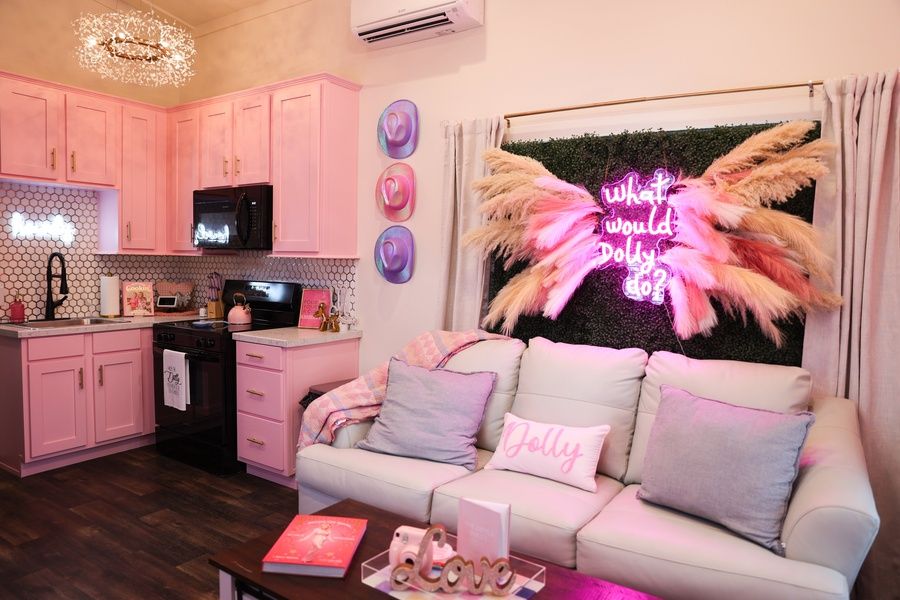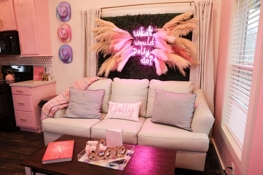 Little Dolly, hosted with Byers - Harvey is located at In the Pines Cottages at KY Lake. Get ready to experience a stay as fabulous as Dolly herself! This one-of-a-kind Dolly Parton-themed tiny home is packed with rhinestone-studded charm, Southern hospitality, and a touch of country glam. Nestled in a peaceful setting, this cozy retreat is decorated with Dolly-inspired memorabilia, vibrant colors, and vintage country elegance. Wake up in a plush, pink-accented bed, sip your morning coffee from a “Cup of Ambition” mug, and enjoy the warm glow of twinkling fairy lights. The charming kitchenette is perfect for whipping up biscuits and gravy, while the cozy living space invites you to relax with a classic Dolly album on vinyl. Outdoors, you’ll find a fire pit for storytelling, a porch swing for daydreaming, and a record player stocked with country classics. Whether you’re a lifelong Dolly fan or just looking for a unique getaway, this whimsical, music-filled escape is sure to leave you saying, “I Will Always Love You!” Book now and add a little sparkle to your next adventure!
