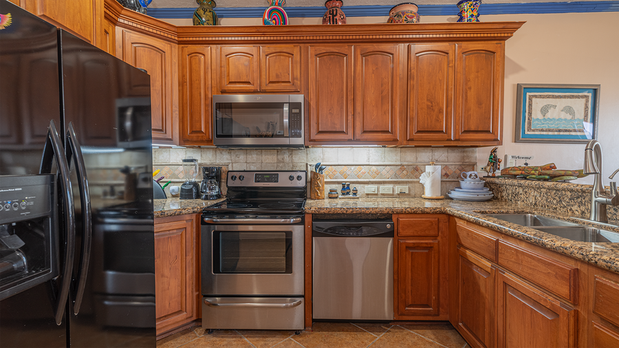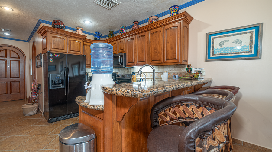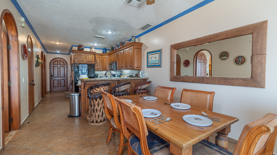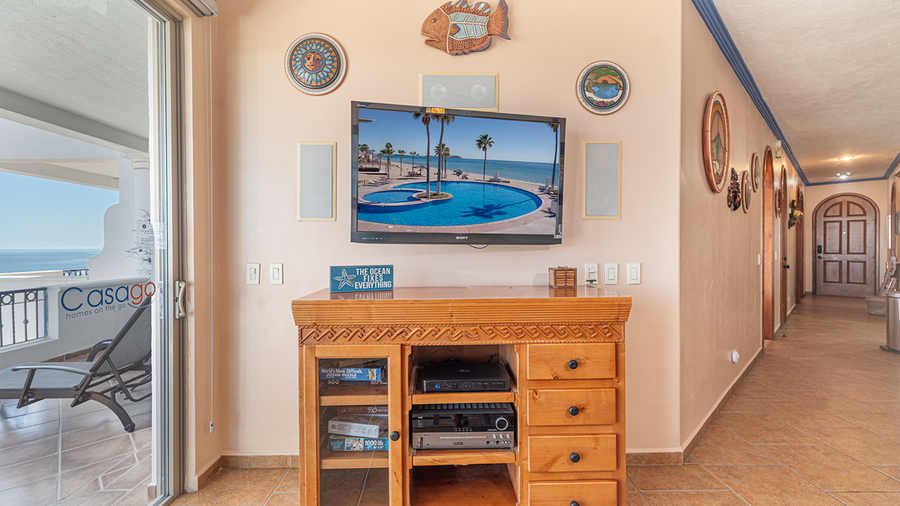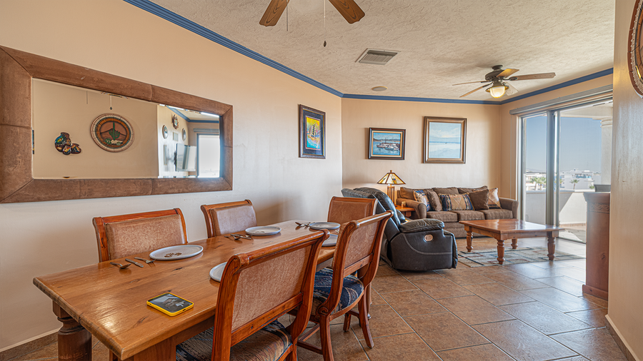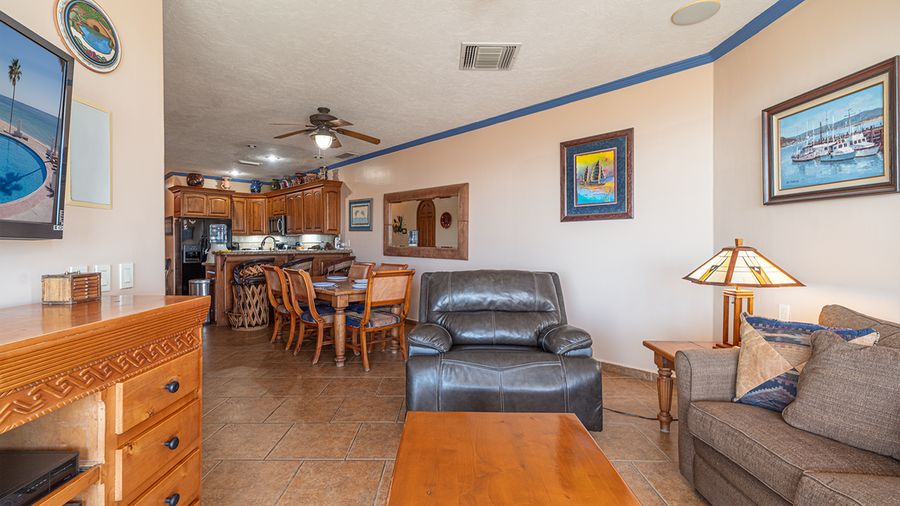 This condo has 2 bedrooms and 2 bathrooms. It is located on the 4th floor of the CC Tower.405 comes with accommodations for up to 6 guests; 2 people in each bedroom and 2 guests can sleep on the pull-out sofa sleeper in the family room. The living room is furnished with a tan and navy blue suede sofa with a bright blue pillow top love seat. The room has a dark birch wood end table, coffee table, and a media unit. There is a birch wood framed mirror mounted on the wall behind the sofa and a lovely reading lamp on the end table. The media unit has a wall-mounted flat-screen TV with cable and DVD and VCR below inside the media unit. The condo has wall mounted surround sound speakers so that you can watch movies and feel like you are in a movie theater. You access the terrace through a set of sliding glass arcadia doors in the living area. The dining room has a rectangular-shaped maple wood table that is set to seat 6 people on matching chairs that have lavender seat cushions and placemats. The room has a wall-size wood framed mirror that really makes the room feel very open and spacious. The kitchen has honey-colored wood cabinetry with black on black appliances and granite countertops. The cabinets and drawers are filled with all the items needed to feel as if you are cooking in your own home kitchen. The tops of the shelves are decorated with small pots and plants and there is also a counter bar that can be used as a serving buffet for your guests. The master bedroom has a king-size beech wood framed bed with a very fancy scrolled metal headboard. The bedding is a patterned print of turquoise and navy blue. There is a matching birch wood nightstand on each side of the bed. Both stands have a reading lamp and a drawer for misc items. There is a dresser on the opposite wall where you can keep your clothing and wall-mounted television. The room comes with a large closet if you prefer to hang your clothing and a set of sliding glass doors that open to the terrace. The bedroom has a room darkening roll-up shade so that you can sleep in with ease. The master bathroom has a double sink granite mirrored vanity with a commode and a walk-in shower made of marble and glass block. The 2nd guest bedroom has a queen-size bed with a dark wood arched headboard and blue and white quilted bedding. The room comes with two lighted bedside tables and a dresser for clothing. The room also has a large double door closet and a window that looks out to the resort property. The hall bathroom has a single sink mirrored marble vanity with a commode and walk-in shower. The terrace has a set of chaise loungers perfect for catching some sun and a rectangular-shaped glass top dining table perfect for enjoying a sunset meal. The condo also comes with a washer, dryer and many ceiling fans. You will be so pleased with the accommodations in this condo inside the Casa Blanca resort. There is no internet. ​​​​​​​ ***SOME AREAS STILL UNDER CONSTRUCTION*** Please be advised that before heading to the property, you must stop by our office to pick up the keys. Security Deposit Policy: There is a damage security deposit of 300 USD during Semana Santa/Easter Weekend and Spring Break (from March through April 10th), and 200 USD for the rest of the year. The deposit can be left in cash or by credit card at the time of arrival. Please note that credit card deposits incur a 3% processing fee. Casago - Rocky Point has engaged VacayHome to ensure this listing contains all the information you need and that it is easy for you to book via search engines & online channels. VacayHome is connected directly to the property management system used by Casago - Rocky Point which ensures that availability & rates are up-to-date & accurate. When you book, VacayHome processes payment on behalf of Casago - Rocky Point and a charge will appear on your statement as "VacayHome". VacayHome will send you a confirmation e-mail that contains all the information you need to prepare for your vacation including arrival instructions. VacayHome has a 24 x 7 team to assist you with any questions or concerns you may have prior to arrival. To access VacayHome, obtain the customer support telephone number or read FAQs, please click on the links at the bottom of this page.