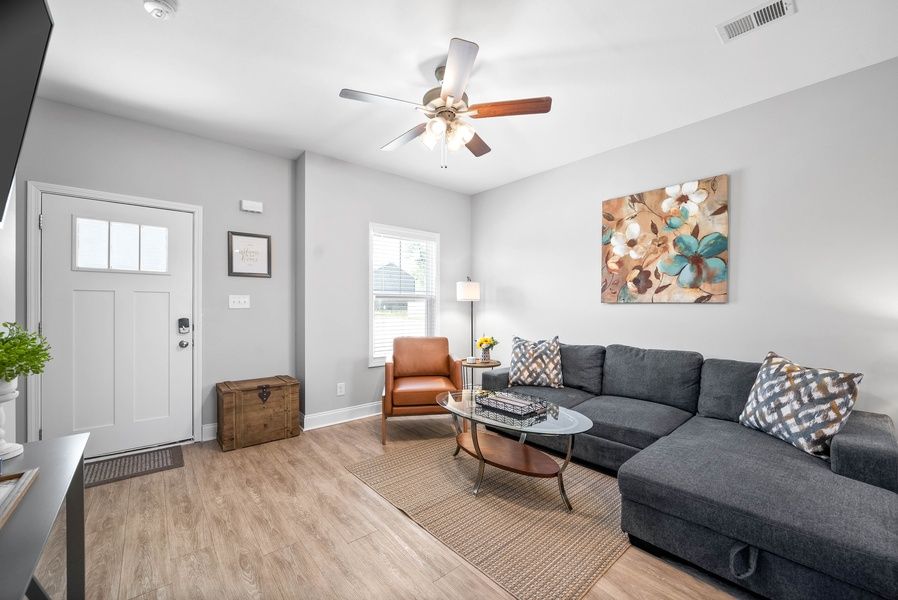 Enjoy our modern 1100sf, two-story apartment with a private entrance. We're located within 10 minutes of the city's most popular bars, restaurants, and Austin Peay State University. We have 2 designated parking spots in the main parking lot which leads directly to your front door.