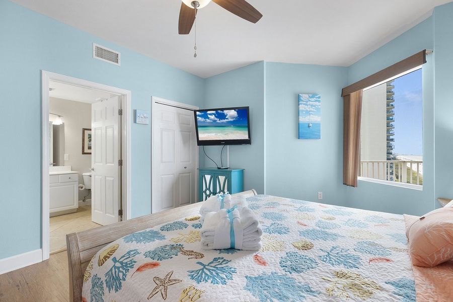 Welcome to Sea Turtle Retreat, a spacious 3-bedroom, 3-bath beachfront condo at Tidewater Beach Resort that sleeps 8. Perfect for families or groups, this beautifully furnished retreat features three luxurious king bedrooms, each offering comfort and privacy. A cozy sleeping nook with twin-over-twin bunk beds provides a fun space for the kids.