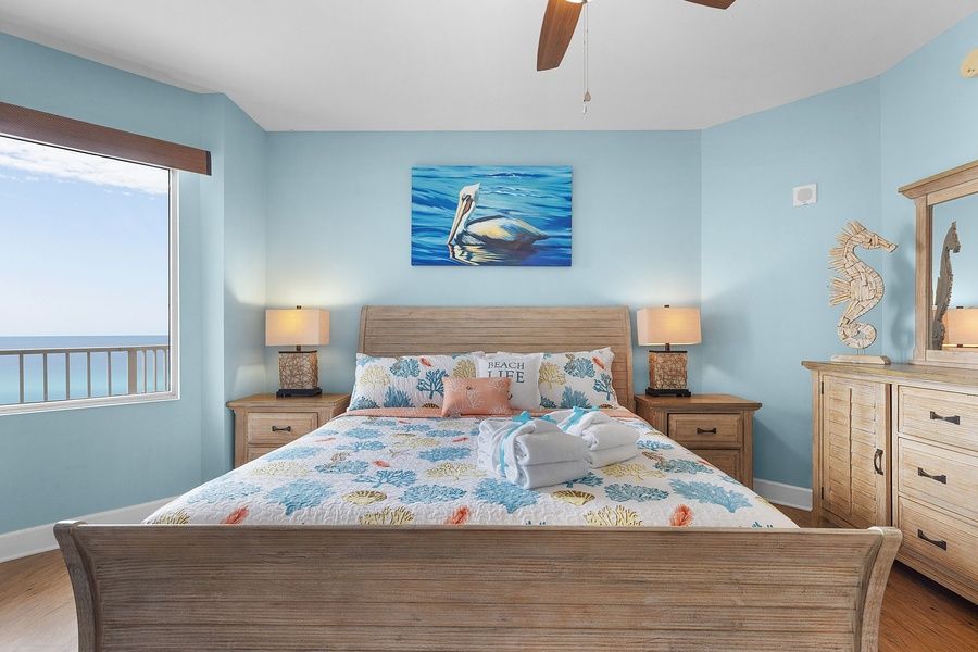 The open-concept living and dining area is perfect for gathering, and the fully equipped kitchen makes it easy to prepare meals. Step onto your private balcony and take in the breathtaking Gulf views, the perfect spot for morning coffee or sunset cocktails.