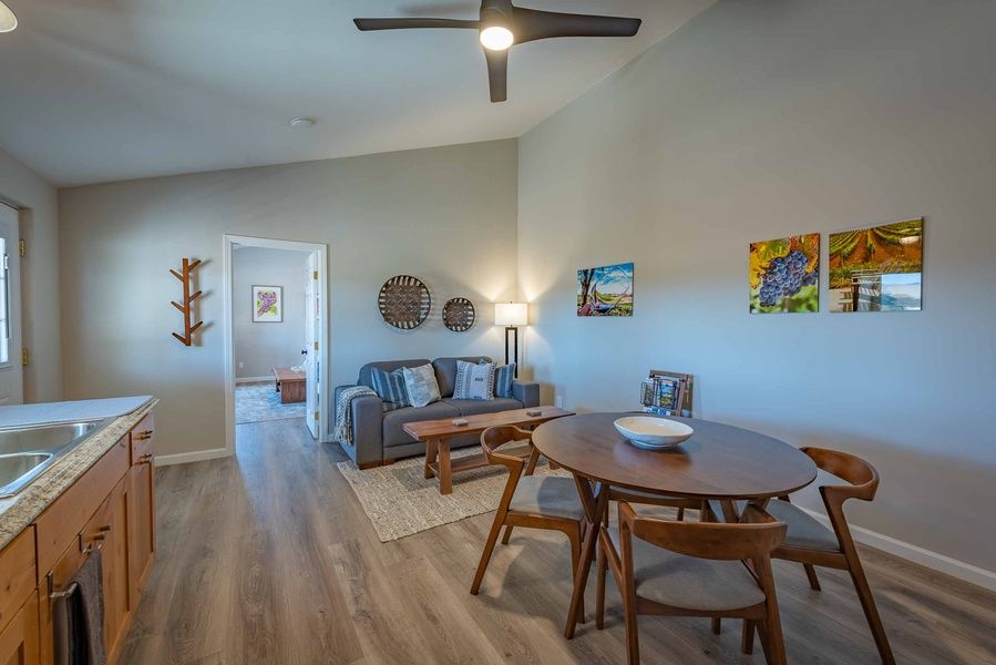 Live the Wine Country Lifestyle you’ve always dreamed about! Enjoy this luxurious, yet quintessential red barn unit sitting on 10 private, vine-covered acres. Relax in the spacious accommodations and incredible vineyard views in this private, gated community off 46W in Paso! You couldn't ask for more perfect Wine Country escape. This beautiful vineyard property is situated at the back of 10 acres, among 7 acres of vines, in a very private gated community just off 46W in the City of Paso Robles. This spacious barn is a separate unit (or can be rented with the entire house) and has 1BR and 1BA with endless views of vineyards, rolling hills, and is perfectly located in the coveted westside wine region. It has quick and easy access to downtown Paso Robles, Route 101, Route 46 West, Paso Airport, PR Event Center and Vina Robles Amphitheatre....and over 200+ wineries in the Paso Robles AVA. This barn unit is roomy and comfortable with a master bedroom, sofa bed, table and chairs and kitchen in the great room. It's the perfect getaway for a romantic weekend for a couple, a small family or as an additional bedroom set-up for the larger group renting the entire house. SLEEPING ACCOMMODATIONS The master bedroom is light-filled and spacious with plenty of vineyard views out the French doors. Adorned with a King size bed, a huge closet, a vaulted ceiling, a ceiling fan, and direct access to the outside through the French doors. The Sleeper sofa is a queen size mattress and can accommodate kids or an extra couple if necessary. A full bath with a tub/shower combo, single vanity and private water closet for privacy makes up the bathroom. Just off the bathroom is a utility room with a sink, washer and dryer and utility closet. We provide a hair dryer, iron, luggage rack and chest of drawers. LIVING & ENTERTAINING (Interior) The great room is the central part of the Barn with a comfy sofa, a full kitchen with all the essentials and a table and 4 chairs for dining. LIVING & ENTERTAINING (Exterior) A French door off the master bedroom and the front door both lead to the covered front patio area which contains two Adirondack chairs for taking in the views and night air. A FEW EXTRAS If you need to work while trying to vacation or, perhaps, you’re doing a workcation, there is a dedicated desk in the master bedroom with high speed internet. GUEST AMENITIES We provide personal amenities including soap, shampoo, conditioner and body lotion, paper products, kitchen necessities such as dishwashing detergent, dishwasher soap and trash bags. The kitchen is stocked with the essential stapes: coffee, tea, olive oil, vinegar, salt, pepper and spices. The laundry room is available for guest usage. THE IMMEDIATE AREA You are in Paso Robles Central! This home is just five minutes from the town square where there are dozens of wine tasting room, restaurants, shopping and a farmer's market every Saturday morning. Downtown there are over 12 wine tasting rooms, along with a distillery and local craft breweries. The downtown City Park offers free summer concerts from June through August every Thursday night. Pack a picnic basket, a bottle of wine or two, your beach chairs and enjoy local musicians belting out everything from Jazz to Rock and Blues. PROVISIONS A few miles from town there is an Albertson's on Niblick. A Smart & Final is located on on Spring Street at 20th. And Trader Joe's is just down the road a bit on Vineyard Drive in Templeton. While at the Trader Joe's you can pick up some fresh caught fish at Pier 46 Fish Market or head on over to the butcher, J&R Meats, for some grass-fed local meats and game. Back up in Paso you can find a few quality cheese shops, Vivant Fine Cheese and Di Raimondos Italian Market and Cheese Shop, along with some cigar shops, Boyd's and Third Base Market & Spirits. RESTAURANTS Paso is packed with great restaurants. Stay a week or two so you can try all of them! Italian, French, Irish, Asian, Mexican, even Argentinean are just a few. From pizza to 5-course meals, Paso Robles has come of age in its dining options. Just a bit to the south, in Templeton, offers a few more options including McPhee's where you can find some of the best wood-fired steaks in town. ACTIVITIES Wine, beer and spirits tasting, hot air ballooning, horseback riding, water park, jeep rides, ziplining, Farmer's Markets, concerts at Vina Robles Amphitheatre, spas, beaches, Morro Bay, Hearst Castle, Cambria...take your pick. There are endless options to play until your heart's content. Digs Vacation Rentals has engaged VacayHome to ensure this listing contains all the information you need and that it is easy for you to book via search engines & online channels. VacayHome is connected directly to the property management system used by Digs Vacation Rentals which ensures that availability & rates are up-to-date & accurate. When you book, VacayHome processes payment on behalf of Digs Vacation Rentals and a charge will appear on your statement as "VacayHome". VacayHome will send you a confirmation e-mail that contains all the information you need to prepare for your vacation including arrival instructions. VacayHome has a 24 x 7 team to assist you with any questions or concerns you may have prior to arrival. To access VacayHome, obtain the customer support telephone number or read FAQs, please click on the links at the bottom of this page.