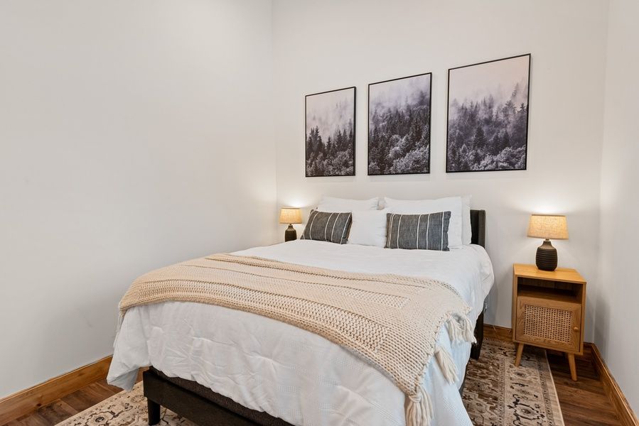 ROOMS & BEDS - 2 bedroom, 1 bath. First bedroom has a queen bed. Second bedroom has a bunk bed and TV. Extra blankets and pillows are available.