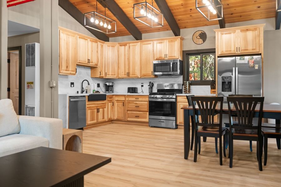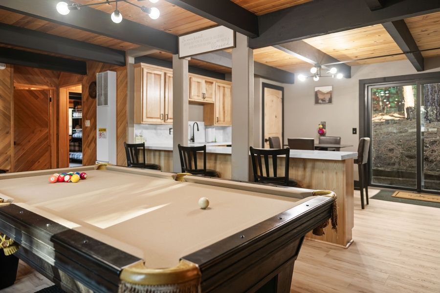 This gorgeous and fully renovated cabin offers an open floor plan with lots of windows and doors to enjoy nature's environment. Nicely re-decorated chalet chic bedrooms with high quality beds, bedding, and furnishings. Modern and unique family cabin in the heart of Big Bear. This home has everything that you could want in a cabin for the prefect mountain experience. Walking distance to Snow Summit Ski Resort, experience the winter in style at this refined cabin. Near the lake, Village, local parks, restaurants and National Forest hiking trails. Just a short drive to Alpine Zoo, Alpine Slide, and more.