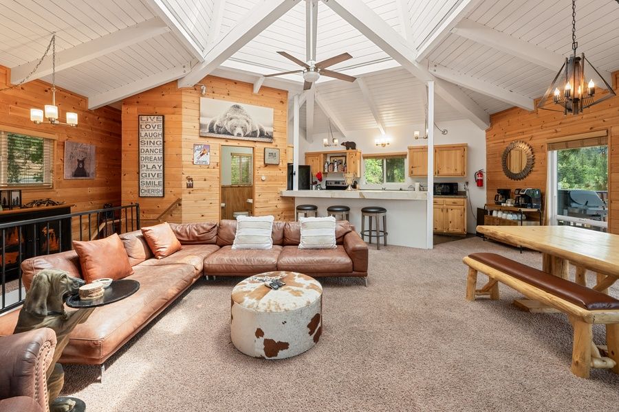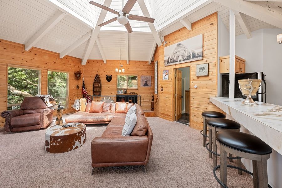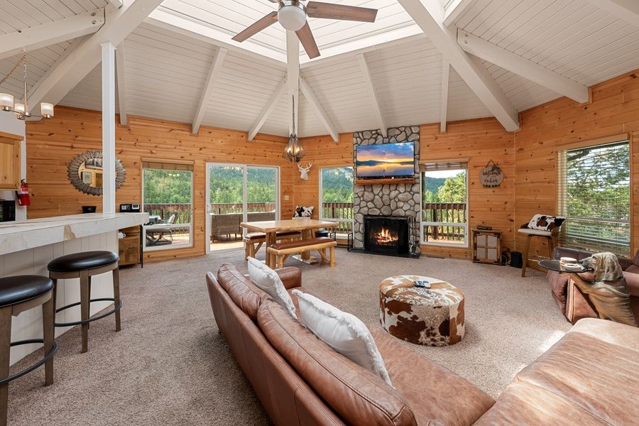 Unique Moonridge cabin with beautiful, awesome panoramic views of the Ski Slopes, National Forest and Big Bear Lake! 3-story custom design with an open-vaulted great room and views from every window. Come and experience this unique Big Bear Cabin and all the amenities offered. Near both Snow Summit & Bear Mountain Ski Resorts, Alpine Zoo, National Forest hiking trails and so much more.
