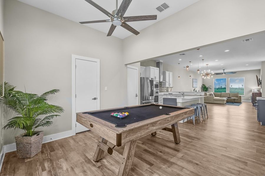 ***A signed Property Management Rental Agreement Contract is mandatory upon booking. Also required is a copy of a driver's license to receive check-in instructions. Contracting guests of Port A Beach House Company must be 25 years of age or older.*** Welcome to Cabana Cove Retreat, your private coastal haven nestled on North Padre Island. This luxurious 3-bedroom, 2 full-bath, 2 half-bath waterfront condo spans nearly 2,000 square feet across three thoughtfully designed levels—perfect for families, couples, or small groups seeking an elevated island escape. Highlights: Waterfront Panorama: Relax on two private balconies or toast the sunset on the rooftop terrace with sweeping water and canal views—ideal for morning coffee or evening cocktails. Boater's Dream: The condo includes two dedicated boat slips just steps from your door, plus easy access to the beach and open water—perfect for fishing, sailing, or cruising. Resort-Style Amenities: Enjoy your private heated pool overlooking the water—an exclusive escape to unwind after a day on the sand. Elegant Interiors: Featuring open-concept living, a gourmet kitchen with granite countertops and an island, designer chandeliers, and vinyl flooring that flows throughout. Comfort & Convenience: Three spacious bedrooms (including a tranquil upstairs primary suite with walk-in closet and duo bathroom), plus two stylish half baths—ensuring ample privacy and comfort. Modern Conveniences: Fully equipped kitchen (convection oven, ice maker, dishwasher), central HVAC, in-unit laundry, and covered carport with two parking spaces and additional guest parking. Prime Location: Just minutes from Corpus Christi's best beaches, dining, and activities, yet tucked in a quiet enclave. BEDROOMS/BATHROOMS (SLEEPS 6) -Master bedroom: King-size bed -Second bedroom: Queen Bed -Third bedroom: Queen Bed -Living room: Queen Sleeper Sofa -Three-and-a-half bath KITCHEN & DINING -Fully equipped kitchen, with basic essential needs -Standard coffee maker / Keurig coffee maker -Toaster -Blender ADDITIONAL INFORMATION -A two-night minimum stay is required. -Check-in time is approximate; housekeeping and maintenance make all attempts to be ready by 4 pm, but there is no guarantee. -STARTER set for guests to include two trash bags, dish soap and two dishwashing pods, one toilet paper roll per bathroom, one paper towel roll, and mini toiletry supplies. Guests SHOULD bring extra amounts of these items as the starter set is for 1 night, and we will not resupply the home. -Construction is always happening somewhere in Port Aransas; we can't guarantee that you won't hear/see construction, building, or community improvement projects and events during your stay. -Cable/WIFI is provided as a convenience; Port A does experience outages from time to time. There are no refunds for outages of cable/WIFI or if the city pool is closed for cleaning, repair, or maintenance. -Please remember that you are on an island; mosquitoes/pests can be plentiful several times per year. Our properties are treated by a professional pest control service every month. CLEANING AND INSPECTION -We use disinfecting products that meet or exceed CDC performance standards. -Every property is stocked with bath towels & washcloths for the maximum occupancy of the property, along with one hand towel per bathroom. -These complimentary amenities are provided in the property as a convenience until you can go shopping: hand/bath soap, one toilet paper roll per bathroom, one paper towel, two dishwasher pods, two trash bags, and one make-up wipe per bathroom. -We inspect every property to make sure it is up to standard and ready for your family's arrival. THINGS TO BRING -Beach/pool towels -Shampoo & conditioner -Sunscreen -Beach gear, toys, chairs, umbrella -Food, condiments, oils & spices, coffee, etc. ***WiFi is not compatible with guests working remotely during their stay. We do not guarantee a good connection due to spotty Internet on the island Port A Beach Company has engaged VacayHome to ensure this listing contains all the information you need and that it is easy for you to book via search engines & online channels. VacayHome is connected directly to the property management system used by Port A Beach Company which ensures that availability & rates are up-to-date & accurate. When you book, VacayHome processes payment on behalf of Port A Beach Company and a charge will appear on your statement as "VacayHome". VacayHome will send you a confirmation e-mail that contains all the information you need to prepare for your vacation including arrival instructions. VacayHome has a 24 x 7 team to assist you with any questions or concerns you may have prior to arrival. To access VacayHome, obtain the customer support telephone number or read FAQs, please click on the links at the bottom of this page.