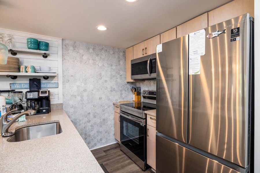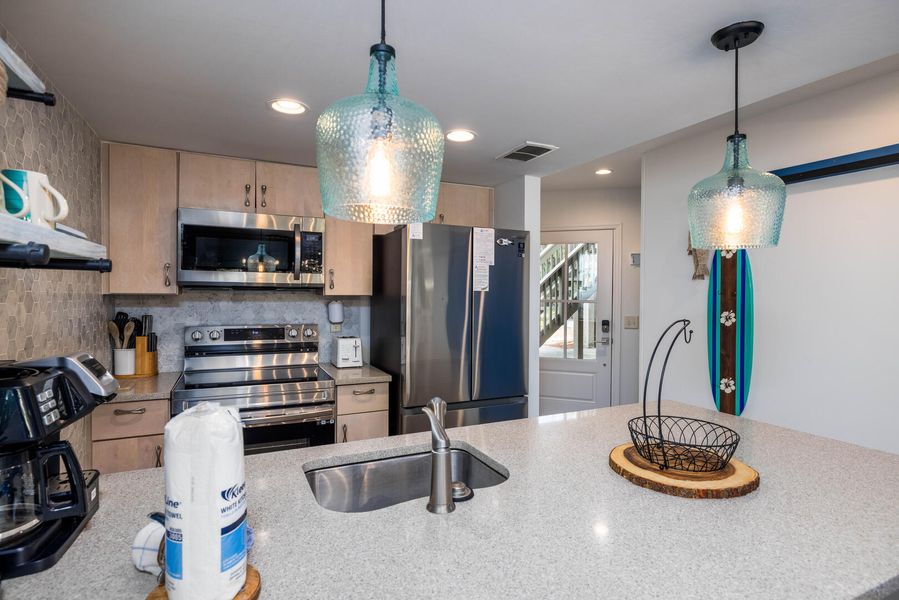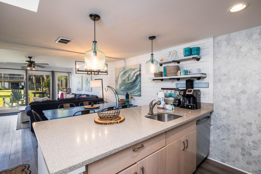 Your unit is stocked with a starter set of essentials like toilet paper and paper towels. Springtide Market & Deli (located at the front of the island near the guard gate) stocks all essentials needed for a longer stay as well as groceries, grab-and-go, liquor, beach accessories, and much more!