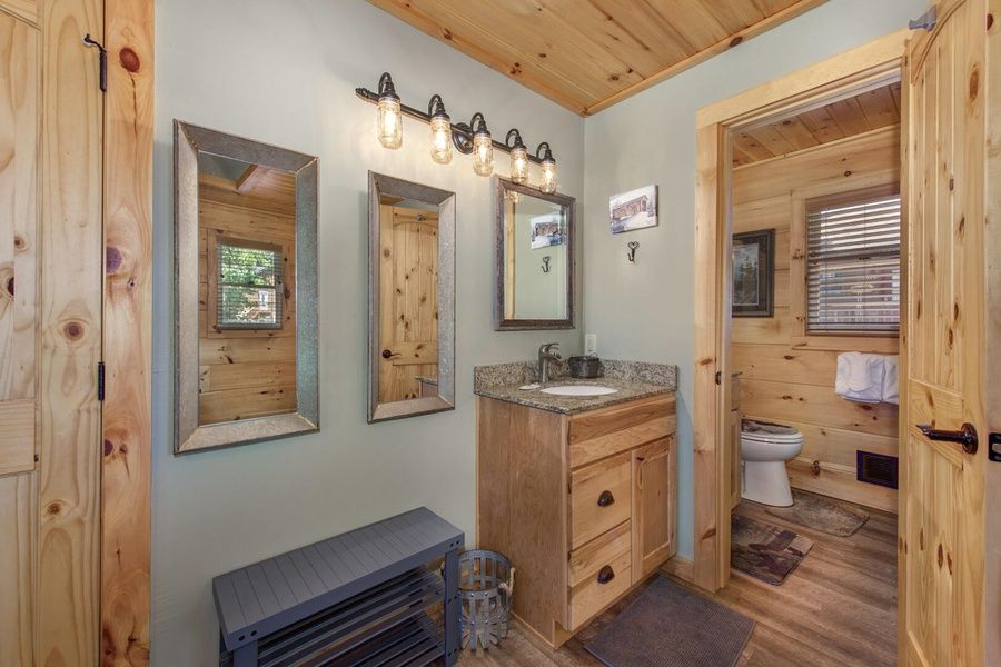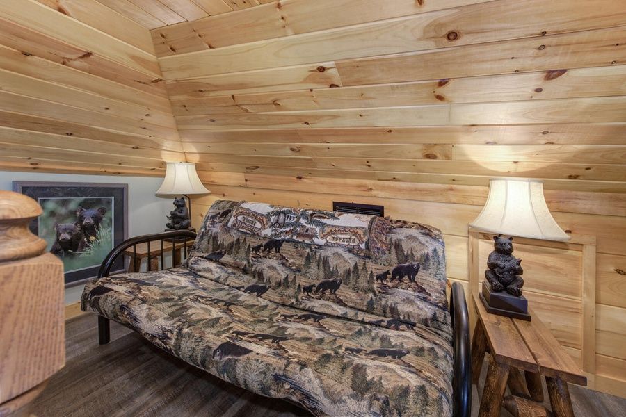 All About the Smokies offers guests three floors of rest, relaxation & fun. This cabin is updated with modern amenities and the addition of a movie theatre room in May 2023. Enter the main floor with soaring ceilings of beautiful tongue & groove, stacked stone fireplace, fully stocked kitchen and new furniture throughout.. Three King bedrooms w/bath, fully stocked kitchen with hickory cabinetry & granite countertops. Living room space has seasonal stacked stone floor to ceiling gas fireplace. Main floor exterior deck has a gas grill, picnic table for dining and plentiful deck furniture for soaking in the gorgeous views and star filled nights. The lower level is where the real fun begins with movie theatre room, foosball coffee table, arcade games, pool table, gas fireplace and coffee bar with mini fridge toaster & microwave. Outdoor fire table is perfect for marshmallow roasting & smore making. For some real fun, kick back in the jetted hot tub for some real R & R. Loft space offers futon and perfect getaway for reading a book or afternoon napping after a long day of tourist fun. Cabin is on a cul-de-sac road with ideal space for exercising pets or taking in beautiful sunrise/sunset scenery. The cabin has parking for two vehicles. All of this and so much more is waiting for you here, Book now for your next getaway to All About the Smokies.
