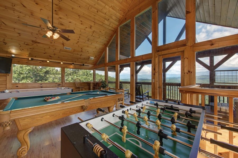 2 BD, 2 BTH, 2 K, 1 Q S.S., Pool table, foosball table, Arcade game, Air Hockey table, FP, HT, Jacuzzi tub, Mnt Views, @SCR, 3 levels