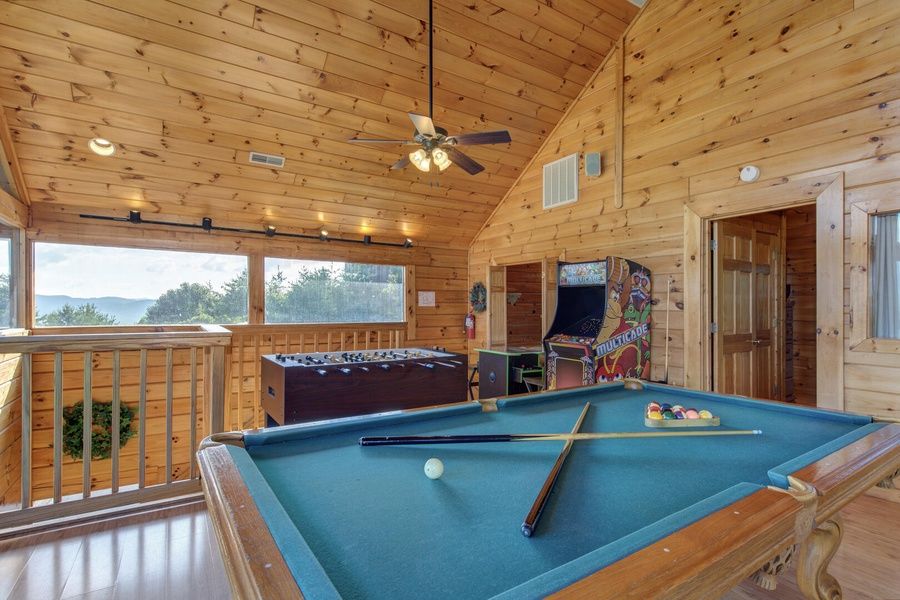 4 BD, 3 BTH, 2 K, 2 Q, 1 Q S.S., Pool table, foosball table, 2 Arcade game, Air Hockey table, FP, HT, Jacuzzi tub, Charcoal grill, Outdoor resort pool, Mnt Views, @SCR, 3 levels