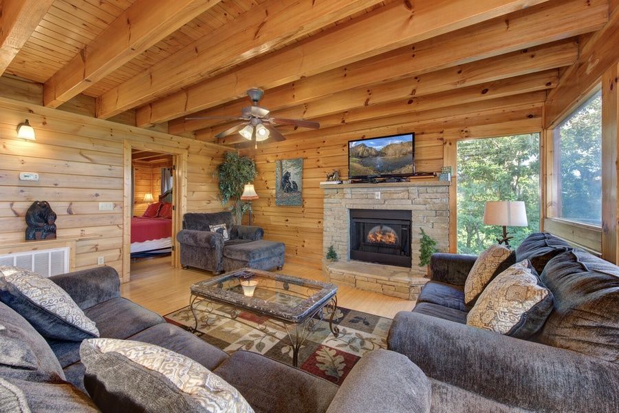Beverly's Bearadise is a spacious four-bedroom cabin nestled in Starr Crest Resort. The beautiful cabin comfortably sleeps 10 guests with two king beds, two queen beds, one sleeper sofa and three bathrooms. Beverly's Bearadise is the perfect retreat for enjoying picturesque views of the beautiful Smoky Mountains while relaxing in a rocking chair. The bright, full kitchen and adjoining dining area allow guests to conveniently prepare and enjoy meals while fellowshipping and enjoying each other's company. The living room has a beautiful stone fireplace, a 50-inch flat screen TV and comfortable couches. The entire family will stay entertained with pool and air hockey tables, a classic video game system and a hot tub. Beverly's Bearadise is only 5.5 miles from Dollywood theme park and Dollywood's Splash Country water park. Also, the cabin is just minutes away from other area attractions in Pigeon Forge and Gatlinburg.