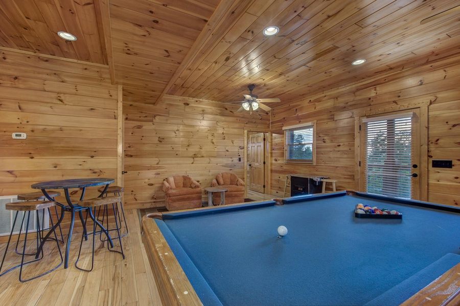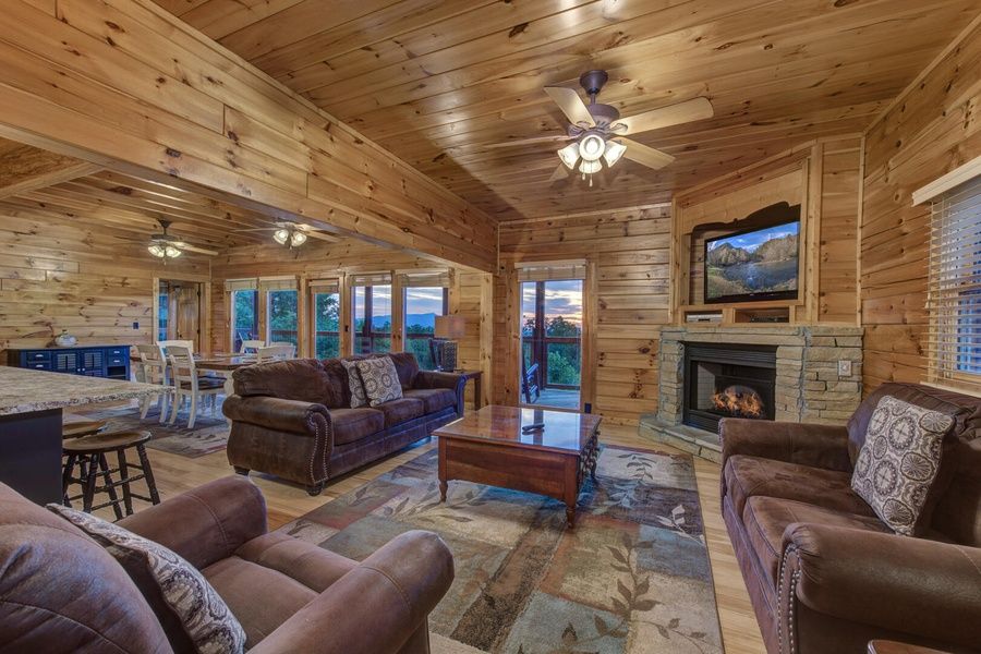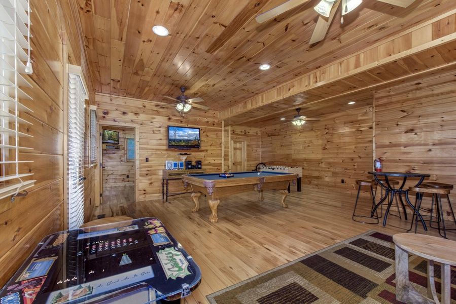 As Good As It Gets is a spacious four-bedroom cabin located in Starr Crest Resort. This three-level log cabin is an ideal getaway for families or groups of friends. As Good As It Gets sleeps 9 guests with one king bed, two queen beds, one full/twin bunk bed, and four bathrooms. Located on the top ridge of a mountain, guests can gaze at the spectacular view of Mt. LeConte from rocking chairs on the deck. Also located on one of the cabin's four decks is a hot tub where guests can enjoy a relaxing soak after a fun-filled day. The living room serves as a spot to fellowship and enjoy one another's company around the beautiful stone fireplace and large, flat-screen TV. Guests can create memories by preparing and enjoying meals in the cabin's full kitchen and dining areas. As Good As It Gets provides guests with entertainment such as pool, air hockey and a video arcade game. As Good As It Gets is only 5.5 miles from Dollywood theme park and Dollywood's Splash Country water park. Also, the cabin is just minutes away from other area attractions in Pigeon Forge and Gatlinburg.
