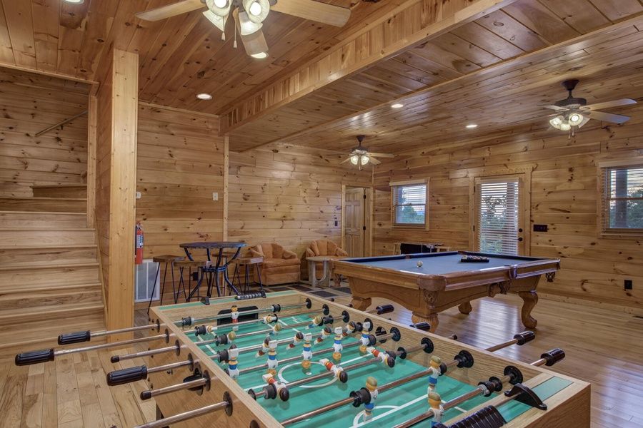 4 BD, 4 BTH, 1/2 bath, 1 K, 2 Q, 1 T/F B.B., Pool table, Foosball, Arcade game, 2 FP, HT, 2 Jacuzzi tubs, Outdoor resort pool, Mnt View, @SCR, 3 levels