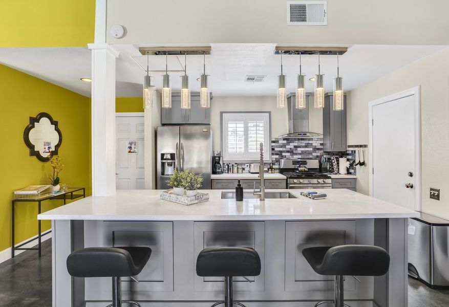 This beautiful 3BD/2BA home was just recently remodeled with new kitchen and bathrooms. Home is designed to entertain with features such as hue lighting, a luxury heated swimming pool and hot tub, outdoor grill, all new appliances, and high-end furniture.