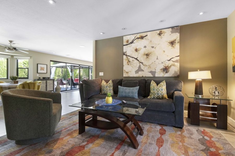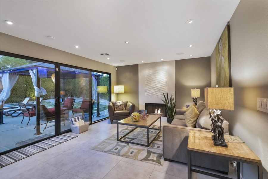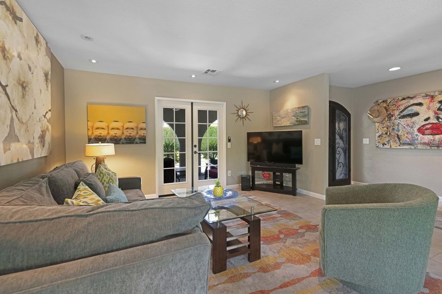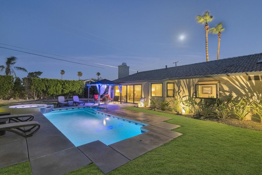 PS CITY ID #069038 Welcome to Casa San Marino. Tucked into a quiet neighborhood yet minutes from downtown, this vibrant 3BR/2BA home blends modern comfort with outdoor indulgence. With a saltwater pool + spa, stylish interiors, and lush landscaping, Casa San Marino is perfect for couples or families seeking a true California escape. Highlights -Saltwater pool + spa surrounded by private, resort-style landscaping -Firepit, outdoor ceiling fans, and shaded patio areas -Multiple living spaces with flat-screen TV and plush seating -Dining table for 6 + gourmet kitchen with granite countertops and stainless appliances -Professionally landscaped yard with natural stone walkways and palm trees -Abundant natural light with floor-to-ceiling windows in the second sitting area -Quiet location, minutes from Palm Springs shops, dining, and entertainment The Space Casa San Marino offers an open-concept layout flooded with natural light and designed for easy living. The main living room features plush furnishings, a large flat-screen TV, and calming neutral tones with vibrant pops of color. Just off the main space, a second sitting area with floor-to-ceiling windows invites quiet reading or morning coffee with a view. The chef-style kitchen boasts granite countertops, stainless steel appliances, and sleek white cabinetry—fully stocked for preparing anything from poolside snacks to family dinners. The dining area seats six and connects seamlessly to both living spaces, keeping everyone connected no matter the occasion. Sleeping Arrangements Primary Bedroom: King bed, en suite bathroom, serene garden views Guest Bedroom 1: Queen bed, shared hall bath Guest Bedroom 2: Queen bed, shared hall bath All bedrooms include quality mattresses, soft linens, and plenty of storage space to make extended stays comfortable and convenient. Outdoor Living Step into your own private oasis, where the saltwater pool and spa are the centerpieces of a beautifully landscaped yard. Lounge on the patio, fire up the grill, or gather around the fire pit beneath the stars. Natural stone pathways, tall hedges, palm trees, and covered outdoor seating areas create a secluded, resort-like feel perfect for making the most of Palm Springs sunshine. Pool Heat Ensure a comfortable swim with optional pool heating, available upon request at booking or before your arrival. The pool is heated to 87 from 7 AM to 7 PM throughout your stay. Rates vary by season: November March: USD75/night and April, May, October: USD50/night. Heat is not needed in other months not listed. For stays under 5 nights, pool heat must be purchased for the entire stay unfortunately we cannot heat it for select days. A 24-hour notice prior to arrival is required to ensure optimal warmth on your first night. Heating begins the day before your arrival at no extra charge. Indulge in the ultimate relaxation with our hot tub, conveniently heated at your fingertips using a remote control. Please note that the hot tub is not pre-heated before arrival, but worry not—there's no extra charge (even if not opting for pool heat) to enjoy its warmth. Simply activate it whenever you desire, creating the perfect atmosphere for a soothing soak during your stay. Utility Surcharge For stays of 28 nights or longer starting June 1st and ending September 30th, a USD750/month utility surcharge will apply to help cover the additional energy costs associated with cooling the home during the summer heat. Additional Policies and Rules -No outdoor music. Doors must be closed if playing music within the house. -100% quiet hours outside from 10pm-10am -No smoking inside home -Renter must be 25+ years of age -Sorry, not Pet Friendly (USD500 fine will be assessed for bringing any pets into this property) -Guests will sign a Ryson "Terms and Conditions" form and City Ordinances require a copy of your ID to Ryson prior to the day of your arrival. Ryson Vacations has engaged VacayHome to ensure this listing contains all the information you need and that it is easy for you to book via search engines & online channels. VacayHome is connected directly to the property management system used by Ryson Vacations which ensures that availability & rates are up-to-date & accurate. When you book, VacayHome processes payment on behalf of Ryson Vacations and a charge will appear on your statement as "VacayHome". VacayHome will send you a confirmation e-mail that contains all the information you need to prepare for your vacation including arrival instructions. VacayHome has a 24 x 7 team to assist you with any questions or concerns you may have prior to arrival. To access VacayHome, obtain the customer support telephone number or read FAQs, please click on the links at the bottom of this page.