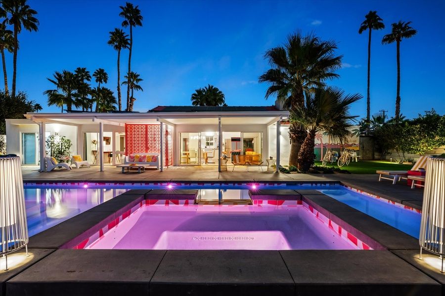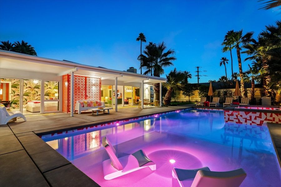 Miami Glam comes to the desert . . . inspired by the most fabulous movie of all time, The Birdcage! A kaleidoscope of color in every room, The Birdcage Palm Springs is the primo vacation rental for your inner glam alter ego.