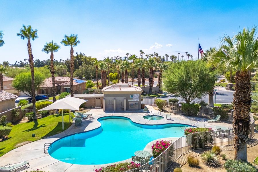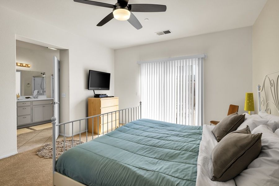 Make the most of the desert weather with the private patio featuring a full outdoor dining setup and BBQ grill—perfect for evening meals under the stars. When you're ready to cool off, the sparkling community pool is just a short stroll away.