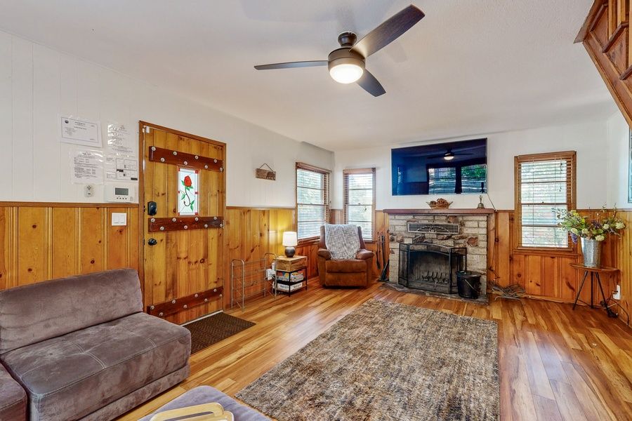 This beautifully remodeled home includes new appliances, furniture, and flooring. Knotty pine wainscoting and a wood-burning fireplace add rustic-chic appeal. Outside, you'll find a quaint front porch, private hot tub, back deck, and fenced yard with outdoor games that include a dart board, bean bag toss, and horseshoe pit. Ample driveway parking is available, so feel free to bring your boat along!
