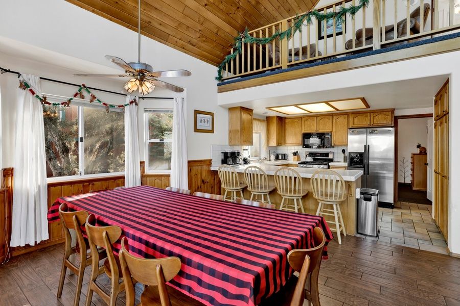 Prepare trail snacks and hearty meals in the kitchen, appointed with an array of stainless-steel appliances. The kitchen bar seats four to morning coffee. When you're ready to eat, gather around the table for eight in the dining area.