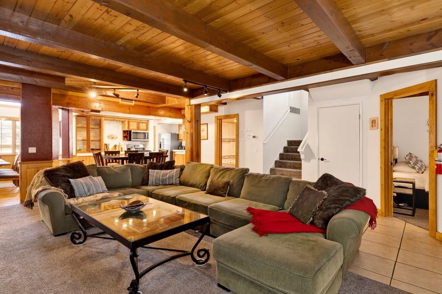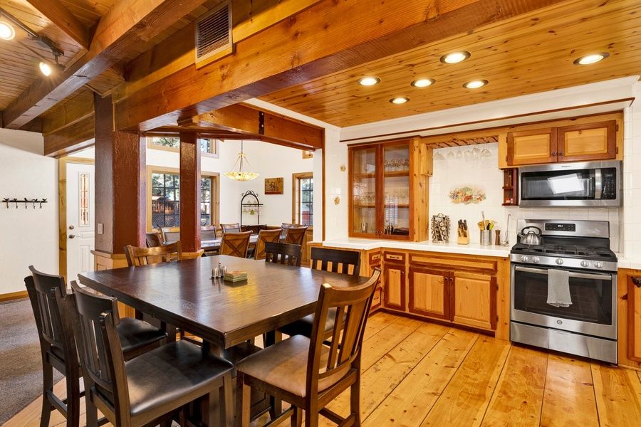2,500 square feet of mountain-yet-modern decor, four 40' flat-screen TVs with DVDs, a movie library, two fireplaces, and a roomy, fully-equipped kitchen (with coffee maker, coffee grinder, Keurig, French Press, toaster oven, a large array of spices, baking and cooking supplies, glassware, Crock-Pot, fondue pot, standard and immersion blender, ice cream maker, water filter and ice maker to name a few!) are just the beginning of this fantastic retreat.