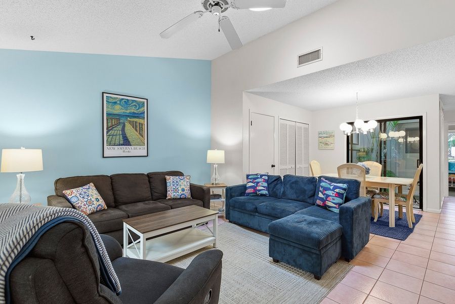 ️ Your Beachside Escape Awaits Welcome to your coastal haven at Sea Woods in New Smyrna Beach—a perfect blend of privacy, relaxation, and active living. Whether you’re escaping Midwest winters, reconnecting with family, or indulging in a couple’s getaway, this 2-bedroom villa is your home base for sun, sand, and serenity. Surrounded by lush, natural dunes and tranquil walking paths, this peaceful pet-friendly retreat offers both comfort and convenience with resort-style amenities just steps from your door. Bring up to two of your furry friends—pets are welcome here! ► 2 Bedroom - 2 Full Bathrooms - Complete Kitchen - Sleeps 6 ► Pet-friendly: Up to 2 well-behaved pets allowed ► Private villa with access to beach and nature trails ► Ideal for families, couples, and snowbirds ► Relaxed, quiet community perfect for extended stays ► Three pools, tennis/pickleball courts, gym and more Location Features Situated in the beloved Sea Woods community, the villa is just a short stroll to New Smyrna’s beautiful car-free beach. Nestled among 50 acres of serene rolling dunes, the community’s coastal charm and walkability make it one of the most sought-after spots in town. You’re minutes from groceries, restaurants, and the best of beachside living. ► Walk to the beach in minutes—no crowds, no traffic ► Surrounded by palm trees, walking trails, and coastal nature ► Short walk or drive to restaurants, cafés, and boutiques ► Ideal base for exploring Canaveral National Seashore ️ Space and Sleeping Arrangements Step inside a bright, breezy villa designed for comfort and ease. The layout suits both families and couples, with thoughtful touches that make longer stays feel effortless. ► Primary bedroom: Queen bed, private bath with tub/shower ► Guest bedroom: 2 Twin beds ► Living area: Queen sleeper sofa for additional guests ► 2 full bathrooms for convenience + linens and essentials included! Kitchen Details Whip up breakfast or beach-day lunches in the fully equipped kitchen. Whether you’re cooking for the kids or prepping for happy hour on the patio, this space has everything you need. ► Full-size appliances and stocked cabinets ► Dining area with seating for 4 and garden atrium view ► Perfect for families or extended-stay snowbirds ► Includes coffee maker, microwave, toaster and more WiFi and Workspace Need to check in with the office—or post beach pics? Enjoy reliable high-speed WiFi that supports video calls, streaming, or planning your next day’s adventure. ► Free wireless internet throughout the villa ► Dining table doubles as laptop workspace ► Quiet environment ideal for remote work or writing Entertainment Whether you're feeling active or lazy, this villa has it all. Grab a paddle, dip in the pool, or curl up for movie night—everything you need to recharge and reconnect is right here. ► 3 swimming pools (one heated seasonally) ► Tennis, pickleball, racquetball and shuffleboard courts ► Saunas and a well-equipped fitness center ► Living room with flat-screen TV, DVD player, and stereo Nearby Activities and Restaurants Beyond beach lounging (which we highly recommend), you’re just minutes from delicious dining, outdoor adventures, and natural Florida beauty. ► JB’s Fish Camp – seafood, kayak rentals, and riverfront views ► Downtown NSB – dine at The Garlic, Norwood’s, Third Wave, or Flagler Tavern, all local favorites for fresh eats and lively vibes ► So Napa – Sonoma-inspired cuisine and curated wine selection ► The Baker’s Table – elevated local dining with seasonal flair ► Canaveral National Seashore – pristine coastline and native wildlife ► Outdoor fun – surfing, fishing, eco tours, golf, biking, paddleboarding Why Guests Love It ► "The peaceful vibe of Sea Woods is unmatched—perfect for our winter escape! We walked to the beach every day and played pickleball every afternoon." ► "Loved how close everything was! The villa was spotless and had everything we needed for a relaxing stay. Already planning our return.” ► "It truly felt like home away from home. Quiet, clean, and full of amenities—plus the walking trails were a surprise highlight." House Rules and Other Considerations Simple, Friendly Guidelines so it's easy to relax and enjoy your stay. ► No smoking ► Pets welcome: Up to 2 dogs allowed (pre-approval may be required) ► Must be 25+ to book ► Free parking on-site ► Beach chairs, towels, and umbrella provided ► Rental agreement and ID verification required ► Self check-in via smart lock Casago - New Smyrna Beach has engaged VacayHome to ensure this listing contains all the information you need and that it is easy for you to book via search engines & online channels. VacayHome is connected directly to the property management system used by Casago - New Smyrna Beach which ensures that availability & rates are up-to-date & accurate. When you book, VacayHome processes payment on behalf of Casago - New Smyrna Beach and a charge will appear on your statement as "VacayHome". VacayHome will send you a confirmation e-mail that contains all the information you need to prepare for your vacation including arrival instructions. VacayHome has a 24 x 7 team to assist you with any questions or concerns you may have prior to arrival. To access VacayHome, obtain the customer support telephone number or read FAQs, please click on the links at the bottom of this page.
