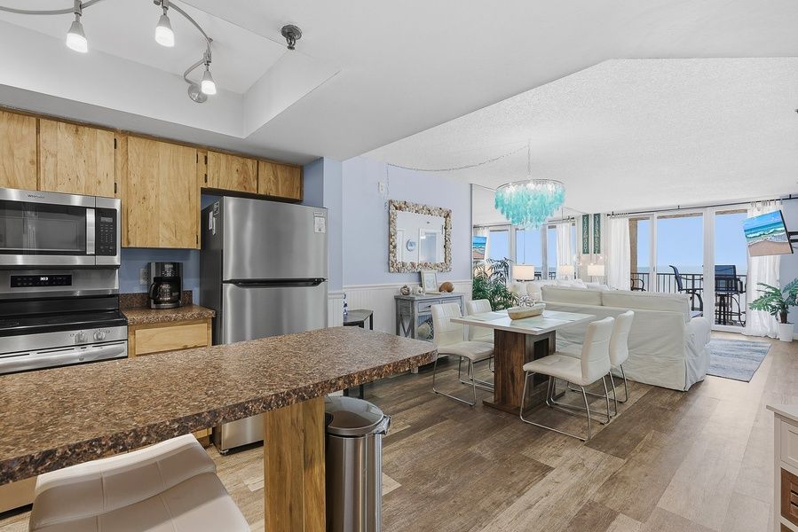 Oceania 505. This recently upgraded, premium ocean front condo at Oceania Beach Club offers stunning shoreline views, perfect for enjoying the sights and sounds of the waves crashing upon the shore. You’ll love the soothing color palette, comfortable furnishings, quality appliances, linens, and towels. This open-concept floor plan means you’ll have lots of space to move around. Decorated in earth tones and beachy décor, there’s no question this is a beach-lovers dream. One of the best perks is enjoying a cup of coffee as and nice breeze in the morning from your private balcony. This is truly a paradise, but don’t just take our word for it, come see Oceania for yourself!
