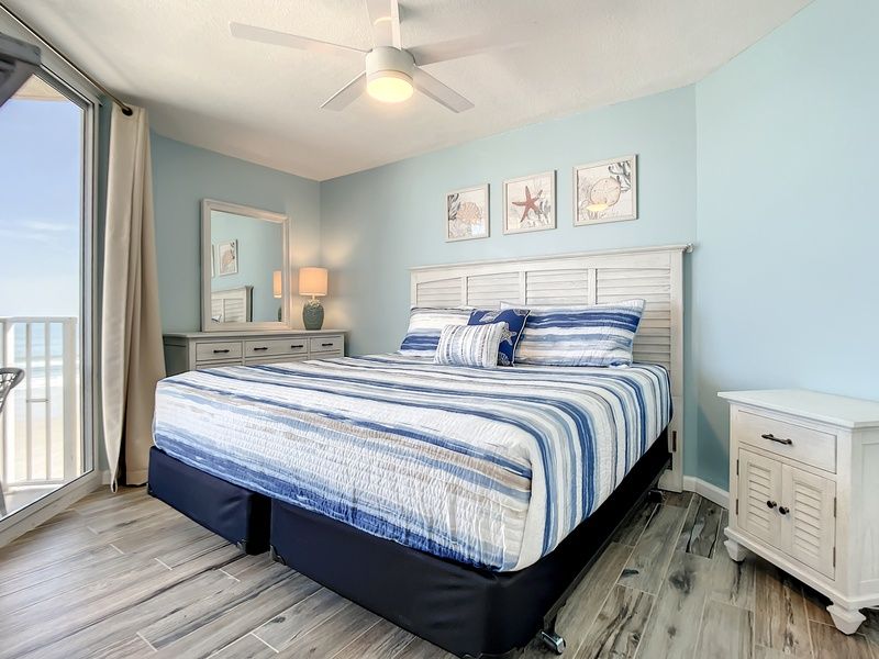 Awesome family-friendly stay in New Smyrna Beach at Oceania Beach Club Complex! - Beachfront grounds with a refreshing pool, picnic tables and lounge areas - Walk to Flagler Ave lined w/gift shops, restaurants and art galleries - Front desk/concierge services, game room, pool table, coin-operated laundry service - Fully-equipped kitchen, dishwasher, private terrace, dining table, community BBQ - Reliable WiFi, comfortable places to work if needed, cable TV + Showtime Oceania 506. This recently updated condo at the Oceania Beach Club Complex is without a doubt going to be one of the highlights of your vacation! With a cool color palette, beachy décor, premium finishings, and uber-comfortable furnishings, you’ll leave this vacation feeling rejuvenated. The open floor plan gives you plenty of space to move around, and you'll be mesmerized by the stunning panoramic view of the ocean. Wake up each morning to the sound of the waves crashing on the shore and enjoy a cup of coffee on your balcony with a sea breeze. Your family will love spending time at the beach and pool, and you'll appreciate the expansive lawn with picnic tables for a sunny lunch outdoors not to mention the game room outfitted with a pool table and arcade games. This is truly a paradise, but don’t just take our word for it, come see Oceania for yourself! Here are the features of the 900 sq ft condo: - A luminous SITTING AREA that has floor-to-ceiling glass doors that give direct access to the patio. The space features a plush sofa and armchairs, a flat-screen TV with cable channels + Showtime, a coffee table, and end tables that create a super comfortable place to rest and recharge between activities. - A PRIVATE OCEANFRONT BALCONY with a table and chairs for enjoying the sea breeze while eating, drinking, or just relaxing! - A fully-equipped KITCHEN with quality appliances and all the cookware, dishware, and utensils you’ll need to prepare homemade dishes if you choose to eat at home. There’s a dishwasher for easy clean-ups, a coffee maker for morning perk-ups, and a blender for afternoon mixers. - A BREAKFAST BAR with 2 cushioned chairs in the kitchen for keeping the cook company, a quick snack, or it can be used as a comfy place to work on your laptop if needed. - A modern stylish DINING TABLE that can comfortably seat 6 guests. - 2 bedrooms and 2 full bathrooms to accommodate up to 6 guests as such: BEDROOM 1: King bed, a flat-screen TV, an ensuite full bath, and direct access to the patio BEDROOM 2: 2 Twin beds and an ensuite full bath LIVING ROOM: Queen Sofa Bed There's a GAME ROOM on the main floor common area that you have access to with a pool table, some arcade games, and there's a SHARED LAUNDRY ROOM in the building on the ground floor that you can use for a fee. Guest Access You’ll have full, exclusive access to the condo. Plus, access to the common areas and amenities at the Oceania Beach Club condo complex. The Neighborhood The Oceania Beach Club is about 75 miles from the Orlando International Airport (MCO) and 22 miles from Daytona Beach International Airport (DAB) and is located in the Oceania Plaza Condo complex in New Smyrna. Here are some of the most visited/famous places in the area: Available Outdoor Activities: - Surfboard and Boogie Board Rentals - Guided Kayak Tours - Boat and Jet Ski Rentals - Golf Cart Rentals - Sunset River Cruises - Sunrise Kayak Tours - Fishing Guides and Charters - Buena Vista Park (fishing and picnicking) - 1 mi - Smyrna Dunes Park (nature trails and fishing) - 3 mi Attractions/Entertainment: - BEACHSIDE TAVERN (An indoor and outdoor venue featuring firepits, darts, a pool table, and live music every night starting at 9 pm. They feature national and local acts.) - 0.6 mi - Disney World - 75 mi - Kennedy Space Center - 50 mi Golf: - New Smyrna Beach Golf Course - 4.4 mi - Hidden Lakes Golf Club - 5.1 mi Other Things To Note There is no daily housekeeping service, but a cleaning service can be requested for an additional fee. Please let us know in advance. Guests will be required to sign a Rental Agreement upon booking confirmation. HOUSE RULES - Travelers must be at least 25 years of age or older to book. - No smoking of any kind (tobacco, cannabis, etc.) is allowed inside the condo or on the balcony. Please use the designated smoking area at the property if you must smoke. Also, the use of any recreational drugs at the property is strictly prohibited. Failure to comply with this rule will incur a USD500 penalty. - No parties/events are allowed, illegal activity is prohibited, and excessive noise will not be tolerated. No loud music after 9 pm. Please be respectful of the neighbors. - No more guests than those listed in your reservation are allowed. - All guests MUST have a valid parking pass displayed and visible at ALL TIMES to prevent your car from being towed. Only ONE overnight pass is allowed per condo. We have no control over towing. Casago - New Smyrna Beach has engaged VacayHome to ensure this listing contains all the information you need and that it is easy for you to book via search engines & online channels. VacayHome is connected directly to the property management system used by Casago - New Smyrna Beach which ensures that availability & rates are up-to-date & accurate. When you book, VacayHome processes payment on behalf of Casago - New Smyrna Beach and a charge will appear on your statement as "VacayHome". VacayHome will send you a confirmation e-mail that contains all the information you need to prepare for your vacation including arrival instructions. VacayHome has a 24 x 7 team to assist you with any questions or concerns you may have prior to arrival. To access VacayHome, obtain the customer support telephone number or read FAQs, please click on the links at the bottom of this page.