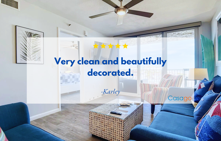 Family-friendly stay at Oceania Beach Club Complex - Walking distance to Flagler Avenue with shops, restaurants/bars, and art galleries - Beachfront grounds with ocean view pool, picnic tables, and lounge areas - Front desk/concierge services, game room, pool table, coin-operated laundry - Fully-equipped kitchen with dishwasher, private terrace, dining table, community BBQ - Reliable WiFi, comfortable workspaces, cable TV with Showtime. Oceania 508. This recently updated Oceania Beach Club condo will undoubtedly be one of the highlights of your vacation! With a cool color palette, beachy décor, premium finishings, and super-comfortable furnishings. You’ll leave this vacation feeling rejuvenated. The open-concept floor plan gives you plenty of space to move around, and you'll be mesmerized by the stunning ocean view. Wake up each morning to the sound of the waves crashing on the shore and enjoy a cup of coffee and "a moment." Your family will love spending time at the beach and pool, and you'll appreciate the expansive lawn with picnic tables for a sunny outdoor lunch, not to mention the game room outfitted with a pool table and arcade games. This is truly a paradise, but don’t just take our word for it, come see Oceania for yourself! Here are the features of the 900 sq ft, fifth floor Oceanview condo: - An exquisite SITTING AREA with floor-to-ceiling glass doors that provide direct access to the patio and lots of natural...light to the space. The soothing space features a comfortable sofa and armchair, a flat-screen TV with cable channels + Showtime, and a coffee table that create a super comfortable place to rest and recharge between activities and fun trips to the beach. - A fully-equipped KITCHEN with quality appliances and fixtures, as well as all the cookware, dishes, and utensils you’ll need to prepare homemade meals at home if you choose. There’s a dishwasher for easy clean-ups, a coffee maker for morning perk-ups, and a blender for afternoon mixers. - A BREAKFAST BAR with 2 tall chairs where you can sit down while doing meal prep and it can also be used as a place to work on your laptop if needed. - A beautiful wood DINING TABLE that can comfortably seat 4 guests for sit-down meals at home with good conversation. - A PRIVATE OCEANVIEW BALCONY for enjoying the sea breeze, eating, drinking or just relaxing! - 2 cozy bedrooms and 2 full bathrooms to accommodate up to 6 guests as such: BEDROOM 1: King bed, flat screen TV, ensuite full bath, and direct access to the patio BEDROOM 2: 2 Twin beds, flat screen TV, and ensuite full bath COMMON AREA: Pull-out queen sofa bed There's a GAME ROOM on the main floor common area that you have access to with a pool table, some arcade games, and there's a SHARED LAUNDRY ROOM in the building on the ground floor that you can use for a fee. Guest Access You’ll have full, exclusive access to the condo. Plus, access to the common areas and amenities at the Oceania Beach Club condo complex. The Neighborhood The Oceania Beach Club is about 75 miles from the Orlando International Airport (MCO) and 22 miles from Daytona Beach International Airport (DAB) and is located in the Oceania Plaza Condo complex in New Smyrna. Here are some of the most visited/famous places in the area: Available Outdoor Activities: - Surfboard and Boogie Board Rentals - Guided Kayak Tours - Boat and Jet Ski Rentals - Golf Cart Rentals - Sunset River Cruises - Sunrise Kayak Tours - Fishing Guides and Charters - Buena Vista Park (fishing and picnicking) - 1 mi - Smyrna Dunes Park (nature trails and fishing) - 3 mi Attractions/Entertainment: - BEACHSIDE TAVERN (An indoor and outdoor venue featuring firepits, darts, a pool table, and live music every night starting at 9 pm. They feature national and local acts.) - 0.6 mi - Disney World - 75 mi - Kennedy Space Center - 50 mi Golf: - New Smyrna Beach Golf Course - 4.4 mi - Crane Lakes Golf and Country Club - 16 mi Other Things To Note There is no daily housekeeping service, but a cleaning service can be requested for an additional fee. Please let us know in advance. Guests will be required to sign a Rental Agreement upon booking confirmation. HOUSE RULES - Travelers must be at least 25 years of age or older to book. - No smoking of any kind (tobacco, cannabis, etc.) is allowed inside the condo or on the balcony. Please use the designated smoking area at the property if you must smoke. Also, the use of any recreational drugs at the property is strictly prohibited. Failure to comply with this rule will incur a USD500 penalty. - No parties/events are allowed, illegal activity is prohibited, and excessive noise will not be tolerated. No loud music after 9 pm. Please be respectful of the neighbors. - No more guests than those listed in your reservation are allowed. - All guests MUST have a valid parking pass displayed and visible at ALL TIMES to prevent your car from being towed. Only ONE overnight pass is allowed per condo. Casago - New Smyrna Beach has engaged VacayHome to ensure this listing contains all the information you need and that it is easy for you to book via search engines & online channels. VacayHome is connected directly to the property management system used by Casago - New Smyrna Beach which ensures that availability & rates are up-to-date & accurate. When you book, VacayHome processes payment on behalf of Casago - New Smyrna Beach and a charge will appear on your statement as "VacayHome". VacayHome will send you a confirmation e-mail that contains all the information you need to prepare for your vacation including arrival instructions. VacayHome has a 24 x 7 team to assist you with any questions or concerns you may have prior to arrival. To access VacayHome, obtain the customer support telephone number or read FAQs, please click on the links at the bottom of this page.