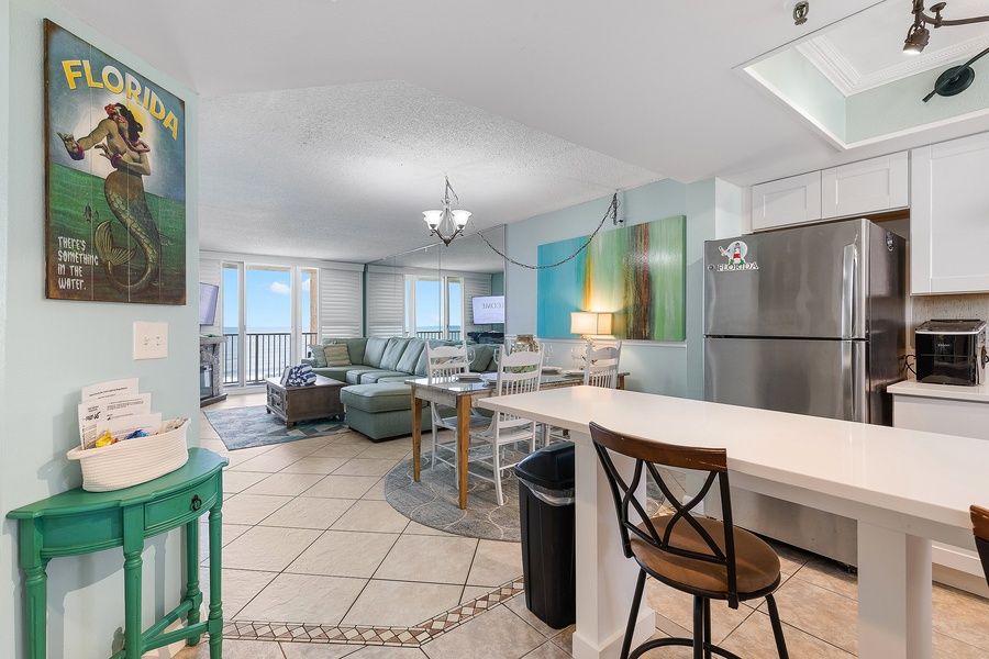 Awesome family-friendly stay in New Smyrna Beach in the Oceania Beach Club! - Walk to Flagler Ave lined with shops, restaurants/bars and art galleries - Beachfront grounds with a refreshing ocean view pool, picnic tables and lounge areas - Front desk, concierge services, game room, pool table, coin-operated laundry service - Fully equipped kitchen, dishwasher, private terrace, dining table, community BBQ - Reliable WIFI, comfortable places to work if needed, cable TV + Showtime This 900sq ft condo features: - A luminous SITTING AREA that has floor-to-ceiling glass doors that give direct access to the patio. The space features plush sofas, a flat-screen TV with cable channels + Showtime, a coffee table, and end tables that create a super comfortable place to rest and recharge between activities. - A PRIVATE OCEANFRONT BALCONY with a table and chairs for enjoying the sea breeze while eating, drinking, or just relaxing! - A fully-equipped KITCHEN with quality appliances and all the cookware, dishes, and utensils you’ll need to prepare food at home. There’s a dishwasher for easy clean-ups, a coffee maker for morning perk-ups, and a blender for afternoon mixers. - A BREAKFAST BAR with 2 chairs in the kitchen for keeping the cook company, a quick snack, or it can be used as a comfy place to work on your laptop if needed. - A modern DINING TABLE that can comfortably seat 4 guests. - 2 bedrooms and 2 full bathrooms to accommodate up to 4 guests as such: BEDROOM 1: Queen Bed, an ensuite full bath, and direct access to the patio BEDROOM 2: Twin top bed and Full bottom bunk and an ensuite full bath There's a GAME ROOM on the main floor common area that you have access to with a pool table, and some arcade games, and there's a SHARED LAUNDRY ROOM in the building on the ground floor that you can use for a fee. Guest Access You’ll have full, exclusive access to the condo. Plus, access to the common areas and amenities at the Oceania Beach Club condo complex. The Neighborhood The Oceania Beach Club is about 75 miles from the Orlando International Airport (MCO) and 22 miles from Daytona Beach International Airport (DAB) and is located in the Oceania Plaza Condo complex in New Smyrna. Here are some of the most visited/famous places in the area: Available Outdoor Activities: - Surfboard and Boogie Board Rentals - Guided Kayak Tours - Boat and Jet Ski Rentals - Golf Cart Rentals - Sunset River Cruises - Sunrise Kayak Tours - Fishing Guides and Charters - Buena Vista Park (fishing and picnicking) - 1 mi - Smyrna Dunes Park (nature trails and fishing) - 3 mi Attractions/Entertainment: - BEACHSIDE TAVERN (An indoor and outdoor venue featuring firepits, darts, a pool table, and live music every night starting at 9 pm. They feature national and local acts.) - 0.6 mi - Disney World - 75 mi - Kennedy Space Center - 50 mi Golf: - New Smyrna Beach Golf Course - 4.4 mi - Hidden Lakes Golf Club - 5.1 mi Other Things To Note There is no daily housekeeping service, but a cleaning service can be requested for an additional fee. Please let us know in advance. Guests will be required to sign a Rental Agreement upon booking confirmation. HOUSE RULES - Travelers must be at least 25 years of age or older to book. - No smoking of any kind (tobacco, cannabis, etc.) is allowed inside the condo or on the balcony. Please use the designated smoking area at the property if you must smoke. Also, the use of any recreational drugs at the property is strictly prohibited. Failure to comply with this rule will incur a USD500 penalty. - No parties/events are allowed, illegal activity is prohibited, and excessive noise will not be tolerated. No loud music after 9 PM. Please be respectful of the neighbors. - No more guests than those listed in your reservation are allowed. - All guests MUST have a valid parking pass displayed and visible at ALL TIMES to prevent your car from being towed. Only ONE overnight pass is allowed per condo. We have no control over towing. - Golf Cart Parking – Golf carts cannot be parked in a parking spot even if that is your only vehicle. Please park in the grassy lot across Buenos Aires. - Front Desk Hours 9 AM - 6 PM Sunday-Thursday, 9 AM - 9 PM Friday and Saturday. - Renters agree to cover any charge related to damages that occurred during their stay or extra-cleaning charges if needed after their stay. - Pets are not allowed. - Guests must adhere to the building and pool rules as well. Casago - New Smyrna Beach has engaged VacayHome to ensure this listing contains all the information you need and that it is easy for you to book via search engines & online channels. VacayHome is connected directly to the property management system used by Casago - New Smyrna Beach which ensures that availability & rates are up-to-date & accurate. When you book, VacayHome processes payment on behalf of Casago - New Smyrna Beach and a charge will appear on your statement as "VacayHome". VacayHome will send you a confirmation e-mail that contains all the information you need to prepare for your vacation including arrival instructions. VacayHome has a 24 x 7 team to assist you with any questions or concerns you may have prior to arrival. To access VacayHome, obtain the customer support telephone number or read FAQs, please click on the links at the bottom of this page.