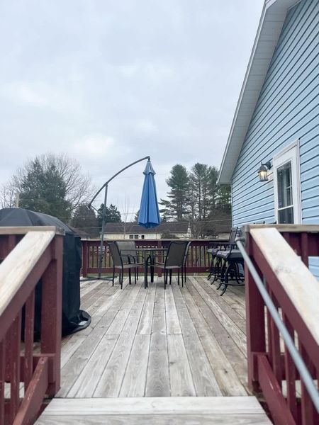 OUTDOOR LIVING: Deck w/ seating and grill, patio w/ hot tub, fire pit