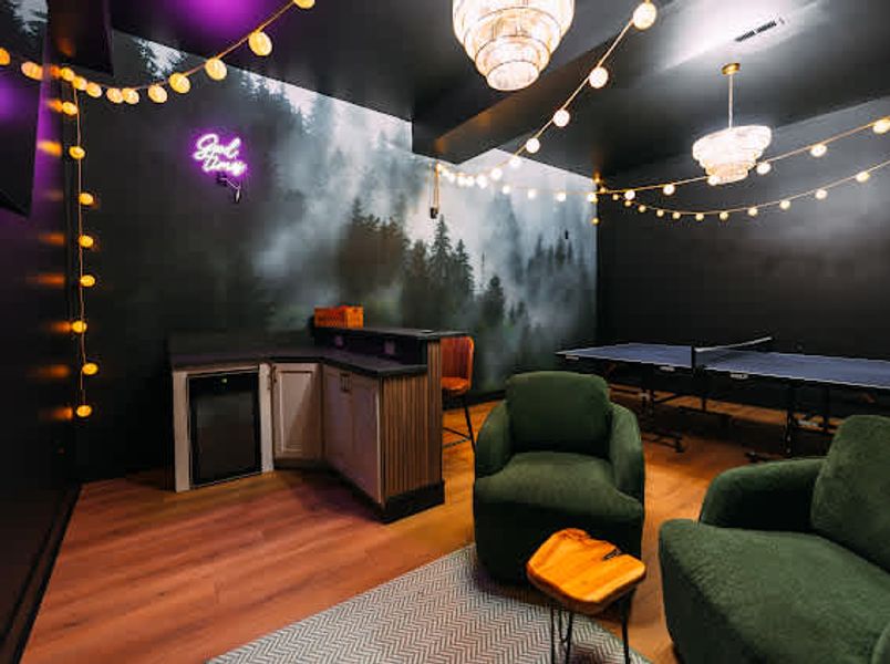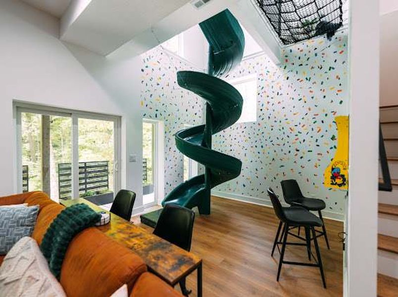 Escape to this unique modern getaway, a family-friendly retreat near Hocking Hills attractions. Take the slide to the basement hang out space, play an arcade game, curl up on the comfy couch, or sneak away to unwind with friends in the speakeasy. Enjoy six smart TVs, an electric fireplace, and a stunning wall of windows filling the space with natural light. With space for eight guests, a hot tub, and thoughtful amenities, this cabin perfectly blends fun and relaxation for unforgettable memories. The Space Escape with family or friends, you’ll love spending time in this modern family-friendly cabin minutes from local restaurants and shops. This 3-bedroom, 2.5-bath retreat was designed for endless fun with features like a one-of-a-kind hammock nook and has plenty of spaces for everyone to relax (or even work from home). Slide from the first floor to the basement to find an arcade game, a kids’ hideout, a hidden speakeasy with ping pong and more. Watch the game or stream a movie on one of six smart TVs, relax in the secluded hot tub, or get cozy by the electric fireplace and enjoy nature through a vaulted wall of windows. Perfect for up to 8 guests, it’s a getaway like no other! FUN -There’s a SLIDE between floors, yes you read that correctly. - Hidden Speakeasy room with ping pong table, darts, basketball hoop - Bar with seating, TV and wine fridge - Arcade game and board games - Cargo net hammock to hang out in between floors - Kids playroom hideout - 6 smart TVs in the house - So much more…. The outdoor space is thoughtfully designed to immerse you in nature, with amenities that seamlessly enhance and elevate your experience. - Hot tub – 7-person - Fire pit - Propane grill - Large decks - Private primary suite balcony - Outdoor furniture for lounging or dining - Parking area for multiple cars KITCHEN/DINING The Greenhouse comes with a beautiful modern kitchen, equipped with everything you will need for your stay! - Island with seating - Large refrigerator/freezer - Microwave - Stove - Oven - Premium coffee maker - Sink - Dishwasher - Cooking utensils - Glasses - Wine glasses and barware - Silverware and dishes - Pots, pans, strainers - Dining table - Pantry cart - Amazon Echo - And more… GREAT ROOM Unwind on the cozy couch while watching your favorite show, warming up next to the electric fireplace, or soaking in the natural light streaming through the expansive windows. - Electric fireplace - High-speed internet (Starlink Wi-Fi) - Large smart TV for streaming - Hulu + Live TV, Disney+ and ESPN+ included - Comfortable couch with pillows and blankets - Coffee table LOFT/WORKSPACE - Futon sofa for afternoon napping - Chairs for relaxing with a good book - Coffee bar - Record player - High-speed internet (Starlink Wi-Fi) -Desk with a view for those working days LAUNDRY ROOM - Top-of-the-line washer and dryer BATHROOMS Gorgeous bathrooms have everything to make your stay even more luxurious. Large walk-in shower in primary and shower/bathtub in secondary. Both feature dual sinks and plenty of counter space. The downstairs has a half bath. - Walk-in tiled shower - Bathtub in secondary - Modern vanity with two sinks - Towels - Hair dryer - Essential toiletries, shampoo, conditioner, body soap BEDROOM Main (2nd Floor) Get comfortable in the primary suite with space to lounge, read a good book, or watch your favorite show from bed. Indoor/outdoor feel continues with skylights throughout. The suite’s private balcony with table and chairs for two is the perfect place to enjoy a peaceful moment or a morning coffee at the edge of the forest. - King bed - Comfortable linens - En suite bathroom - Smart TV - Chair for sitting, reading, relaxing - Dresser drawers - Nightstands/bedside tables - Alarm clock/charger - Private balcony with chairs and table - Full-length mirror - Walk-in closet - Heater, fan, luggage rack BEDROOM 2 (1st Floor) - Queen bed - Comfortable linens - Smart TV - Nightstands/bedside tables - Full-length mirror - Closet - Heater, fan, luggage rack BEDROOM 3 (1st Floor) - Two sets of bunk beds – 4 twin beds total - Comfortable linens - Beanbag chairs - Heater, fan - Ceiling fan and colorful LED lighting - Great for slumber parties Guest Access You will Receive a code for the front door a couple days prior to arrival Interaction If you need anything at all, please message us on the booking platform Check in and out Check in: 04:00 PM Check out: 10:00 AM Foothills Property Management has engaged VacayHome to ensure this listing contains all the information you need and that it is easy for you to book via search engines & online channels. VacayHome is connected directly to the property management system used by Foothills Property Management which ensures that availability & rates are up-to-date & accurate. When you book, VacayHome processes payment on behalf of Foothills Property Management and a charge will appear on your statement as "VacayHome". VacayHome will send you a confirmation e-mail that contains all the information you need to prepare for your vacation including arrival instructions. VacayHome has a 24 x 7 team to assist you with any questions or concerns you may have prior to arrival. To access VacayHome, obtain the customer support telephone number or read FAQs, please click on the links at the bottom of this page.