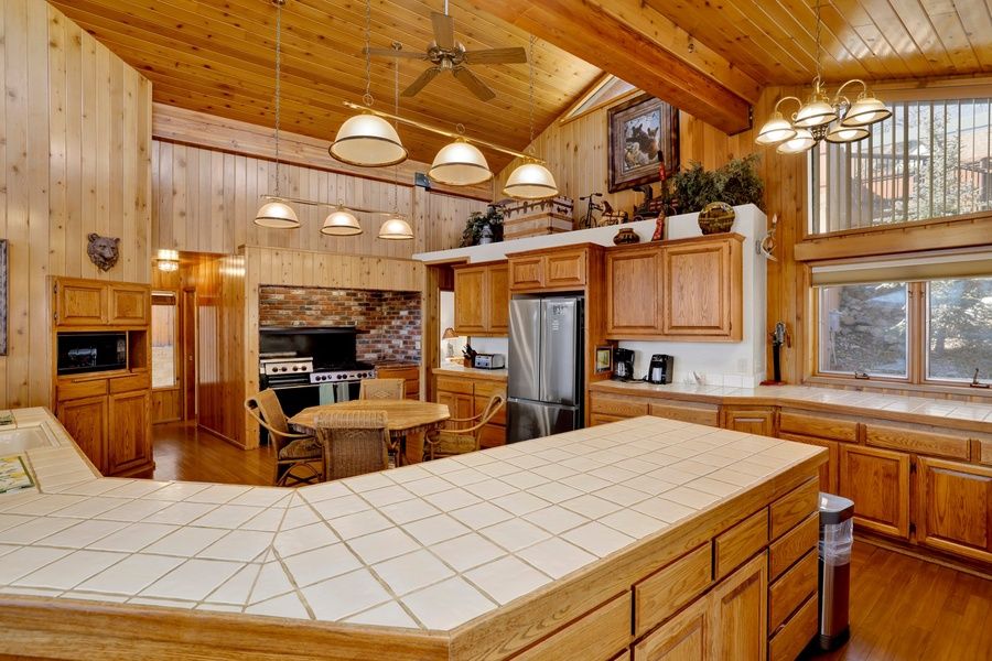 The heart of this home is its impressive kitchen, featuring a commercial-grade Wolf 6-burner stove with two ovens and a griddle range, along with a 48" Viking Grill on the main deck. Whether you're preparing a feast for a gathering or a cozy family dinner, this kitchen is equipped to handle it all. After a day of outdoor fun, unwind in the hot tub or gather around the wood-burning fireplace for a relaxing evening.