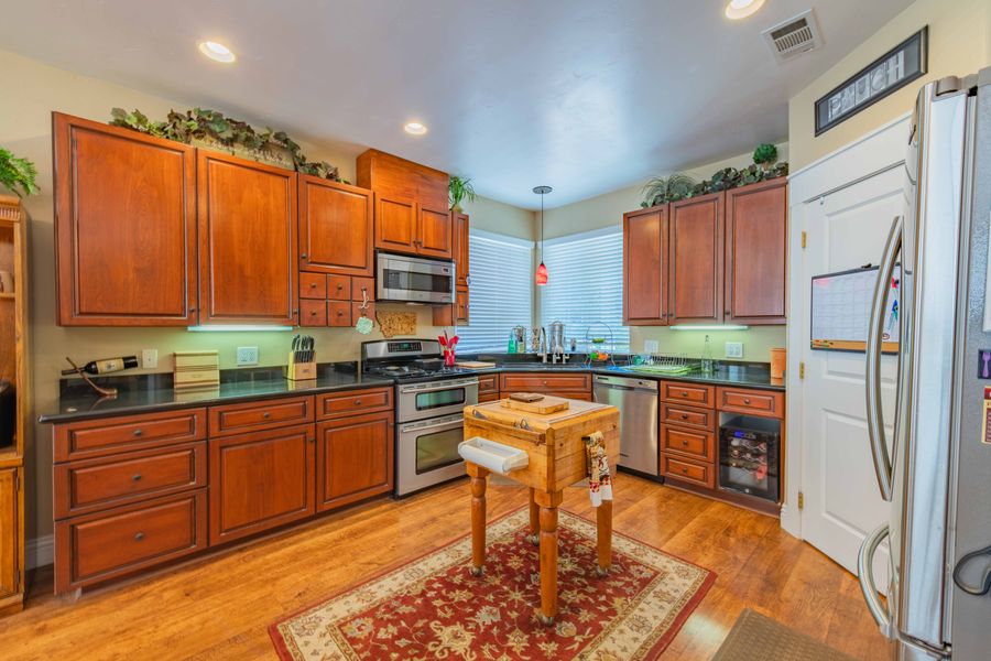 Perched atop the east hills in the City of Paso Robles, in the prestigious Shadow Canyon neighborhood, this 2800 sf hillside ranch, feels so remote, yet only eight minutes from the city square. It has quick & easy access to downtown Paso Robles, Routed 101 & 46 East, Paso Airport, PR Event Center & Vina Robles Amphitheatre....and over 200 wineries in the Paso Robles AVA. This homey ranch is roomy & comfortable. It's the perfect getaway for 5 wine-loving couples, a ladies’ wine weekend, a 60th birthday party or the perfect family reunion. SLEEPING ACCOMMODATIONS The master en suite is large and luxurious. It dons a comfortable king bed, ceiling fan, a 50” SmartTV equipped with Roku and a fabulous en suite. The en suite is outfitted with spa-like amenities: dual vanities, make-up station and an all-in-one shower with body jets and jetted tub. Relax and unwind! Bedroom two has a queen bed with a ceiling fan and a desk for those that must do a little work while on vacation. Bedroom three also has a queen Posturepedic bed, ceiling fan and a desk. Bedroom four has a King bed, 45” SmartTV and ceiling fan. Bedrooms two – four share a common bathroom with a shower/tub combo and single vanity sink. Bedroom five has a King bed, 40” SmartTV, ceiling fan and its own en suite. The en suite has a shower/tub combo and a single vanity vessel sink. The living room also has a queen sleeper sofa for two more All bathrooms have hair dryers, and bedrooms have quality luxe linens and luggage racks and/or clothing storage. LIVING &ENTERTAINING (Interior) Enter the home through the front door into the foyer. Hang your hat and kick off your shoes and relax! You’re made it. Immediately to your left is a living room with ample seating for 7. A comfy leather sofa (also a queen pullout sofa) is enough seating for 3, a leather loveseat is seating for 2 more and two leather swivel side chairs, for a total of 7, all encircle a large wood coffee table. This is the room to catch up with old friends or family members or play some board games with the kids. To the right of the entry is the great room, with a family room, dining area and kitchen. The family room has a large leather section with 3 built-in loungers. The coffee table is where you can find board games for some great family competition. The 55” SmartTV is equipped with Roku and has a Denon 7.1 surround sound speaker system…perfect for watching your favorite TV shows and movies. Don’t forget your Netflix or Prime account numbers! The TV cabinet below the wall-hung TV also has a stereo system and an electric fireplace for some warm ambiance. A classic stereo cabinet with a turntable, complete with dozens of classic albums might just set the tone for a nostalgic, memorable evening. Adjacent to the living room area is the dining area. The dining table seats up to 8 people. It’s a bar-height large wood table with 8 chairs (2 per side) for a great, intimate dinner spot. Next to the living area is the kitchen which features all stainless-steel appliances and a solid wood butcher block island for food prep. Gorgeous cherry wood cabinets and black granite countertops give the kitchen an elegant, homey feel. Appliances include: a Samsung French door fridge with ice and water dispenser on the outside and freezer on the bottom, a Jenn Air 5-burner gas stove and oven combination, a multi-functional Bertazzoni microwave oven, and a Kitchen Aid dishwasher. A large walk-in pantry can store all your food items for the time you’re there. Small appliances include a blender, stand-up mixer and Instapot, along with every kitchen gadget you could possibly need make it the perfect kitchen to prepare the simplest meals to a gourmet 6-course delight. Perfect for pairing with your latest Paso wine acquisitions. LIVING & ENTERTAINING (Exterior) The front porch, facing southwest with views of the vine-covered hills has a few seating areas. Out back is the BBQ area, a seating area and a 2-person hot tub where you can soak, sip and stargaze. GUEST AMENITIES We provide personal amenities including soap, shampoo, conditioner and body lotion, paper products, kitchen necessities such as dishwashing detergent, dishwasher soap and trash bags. There are plenty of linens and towels. Laundry facilities and detergent are in the laundry room. The kitchen is also stocked with the essential stapes: coffee, tea, olive oil, vinegar, salt, pepper and spices. THE IMMEDIATE AREA You are in Paso Robles Central! This home is just eight minutes from the town square where there are dozens of wine-tasting rooms, restaurants, shopping and a farmer's market every Saturday morning. Downtown there are over 12 wine tasting rooms, along with a distillery and local craft breweries. The downtown City Park offers free summer concerts from June through August every Thursday night. Pack a picnic basket, a bottle of wine or two, your beach chairs and enjoy local musicians belting out everything from Jazz to Rock and Blues. Digs Vacation Rentals has engaged VacayHome to ensure this listing contains all the information you need and that it is easy for you to book via search engines & online channels. VacayHome is connected directly to the property management system used by Digs Vacation Rentals which ensures that availability & rates are up-to-date & accurate. When you book, VacayHome processes payment on behalf of Digs Vacation Rentals and a charge will appear on your statement as "VacayHome". VacayHome will send you a confirmation e-mail that contains all the information you need to prepare for your vacation including arrival instructions. VacayHome has a 24 x 7 team to assist you with any questions or concerns you may have prior to arrival. To access VacayHome, obtain the customer support telephone number or read FAQs, please click on the links at the bottom of this page.