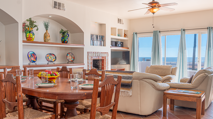 ****PETS WELCOME****** USD35 FEE***** The Olas Altas home is just off of the beach in the ocean side community of Las Conchas. Having your own home for a vacation stay provides a level of privacy not available in a large resort. Terrific views of the ever present Sea of Cortez. 8 guests can stay comfortably here, with it's 4 bedrooms and 3 1/2 baths. If you bring your pet, there is a $35 USD additional charge.