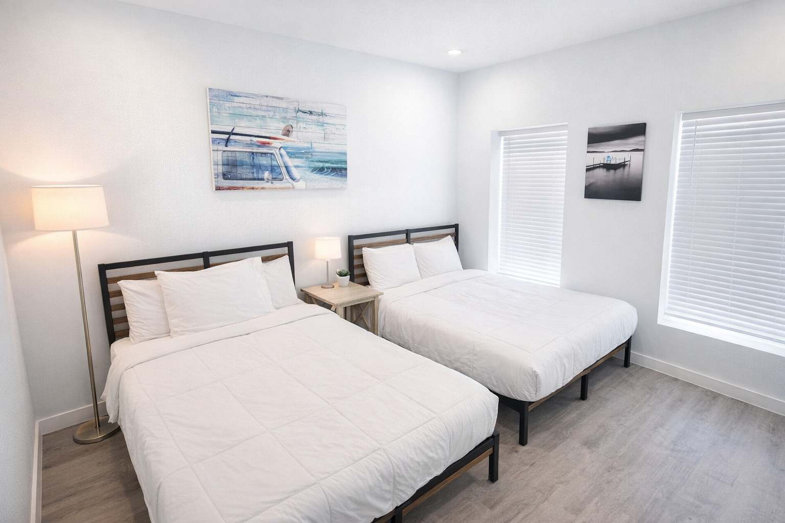 South Padre Trips * 2 Levels * *Heated Pool* New Townhome #4 Description Brand new 2 level townhomes 2 blocks to the beach & across street from bay to fish *White quartz/Stainless appliances *Sleeps 10 *BBQ in front. Washer/Dryer in space *Seasonally heated pool *3 bedrooms w/1st floor master, 2 xtra bedrooms upstairs + full bath *Pet Friendly & 2 parking spaces *WiFi & Smart TVS throughout *Value priced for reasonable luxury Pro-Managed & Cleaned locally by South Padre Trips Please read & agree to all house rules prior to booking About this Space: Thank you for considering our Villas de Laguna at 5100 Laguna Blvd. These brand new side-by-side townhomes feature 2 private levels, with a ground floor living room, fully equipped kitchen, half bath, Master Bedroom with en suite full bath & walk in shower. As there are just 4 brand all new townhomes here, you can expect white quartz counters, stainless appliances, as well a completely open concept kitchen & living room with massive 75” Smart TV & sectional couch to enjoy movies or a football game after a long day at the beach. All furniture is brand new. There is also a smart TV in the master bedroom as well as upstairs in the kids bunkroom. The complex includes 2 off street parking spaces, located directly across the street from the bay & a boat ramp, seasonally heated small pool private to this complex, and a small space in front of your townhome for a small BBQ grill (please bring). If you want to go to the beach, it is less than 2 blocks away from a public beach access point, yet affords you the quiet life bayside. We do allow up to 10 people to stay however, understand a baby or infant is a person, so it is 10 beating hearts in this head count. We do care to describe the bedding ? The master bedroom has a king sized bed, while the 2nd bedroom upstairs has two full beds, and the 3rd bedroom we call the kids bunkroom with 2 built in heavy duty bunk beds each bed is a queen in size. This bunkroom each bunk bed is suitable up to 400 lbs so adults may use. You will find we carefully constructed these so that the two bedrooms are “jack and jill” with the very large full bathroom upstairs meaning you do not need to use a hallway to enter the bathroom. This townhome features excellent tankless water heating system for joyous hot showers in the two walk in shower bathrooms. We also have a full sized stackable washer & dryer upstairs in the hallway area. The pool area is fenced and private, and the pool is heated to 88* November 1 to April 1. We find the two levels offer legit privacy when you have multiple couples or family staying while anyone with a physical impairment can easily have the kitchen, living room, and master bedroom & bathroom on the ground floor. The half bath off the living is perfect if a guest or two wants to use the provided airbed or couch for extra sleeping space. We do provide coffee, creamer, and sweetener + decaf + tea - as well as a starter pack of hand soaps, dish soap, trash bags, 1 roll of paper towels new and starters of toilet paper, non stick cooking spray as well as Salt & Pepper - though not unlimited and not replenished. All towels and linens are also provided - crisp white. Please note this kitchen though fully equipped and stocked with all pots pans dishes etc is not massive nor does it have a dishwasher therefore dishes have to be manually done, It does have full sized washer & dryer upstairs Walk to several bars & restaurants including the Coral Reef (best late night bar on the Island), Kellys Irish Pub (serves food super late), Big Donkey Mexican Cantina, and of course the famous Blackbeards Restaurant for seafood & drinks. You can fish at the end of the street (Polaris) by the way) from shore! While it is not a massive three bedroom private home, you will not find this level of quality that accommodates 10 people at this price. We do allow up to 2 pets, though the property has rules with this – please carefully read all house rules prior to booking prior to booking if you have pets. The occupancy is a strict maximum of 10 as well as max free parking for two vehicles (golf cart included) though there is pretty ample street parking nearby. More details: While we have the best available Internet/wifi from spectrum they are the only provider on the island and up time and coverage can be spotty at times we want you to be aware of that If you can't find the network name SouthPadreTrips it's usually means we had a power outage and when the power comes back on It typically defaults the router to the factory network name and password, which is located on a sticker on top of the router. Generally, if you reboot the router by unplugging it for a few minutes and plugging it back in it will pop up The kitchen is fully equipped ready to go. I have a blender, all utensils, etc. South Padre Trips - Guesty has engaged VacayHome to ensure this listing contains all the information you need and that it is easy for you to book via search engines & online channels. VacayHome is connected directly to the property management system used by South Padre Trips - Guesty which ensures that availability & rates are up-to-date & accurate. When you book, VacayHome processes payment on behalf of South Padre Trips - Guesty and a charge will appear on your statement as "VacayHome". VacayHome will send you a confirmation e-mail that contains all the information you need to prepare for your vacation including arrival instructions. VacayHome has a 24 x 7 team to assist you with any questions or concerns you may have prior to arrival. To access VacayHome, obtain the customer support telephone number or read FAQs, please click on the links at the bottom of this page.