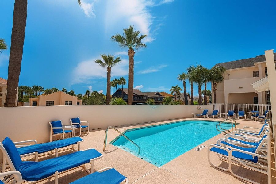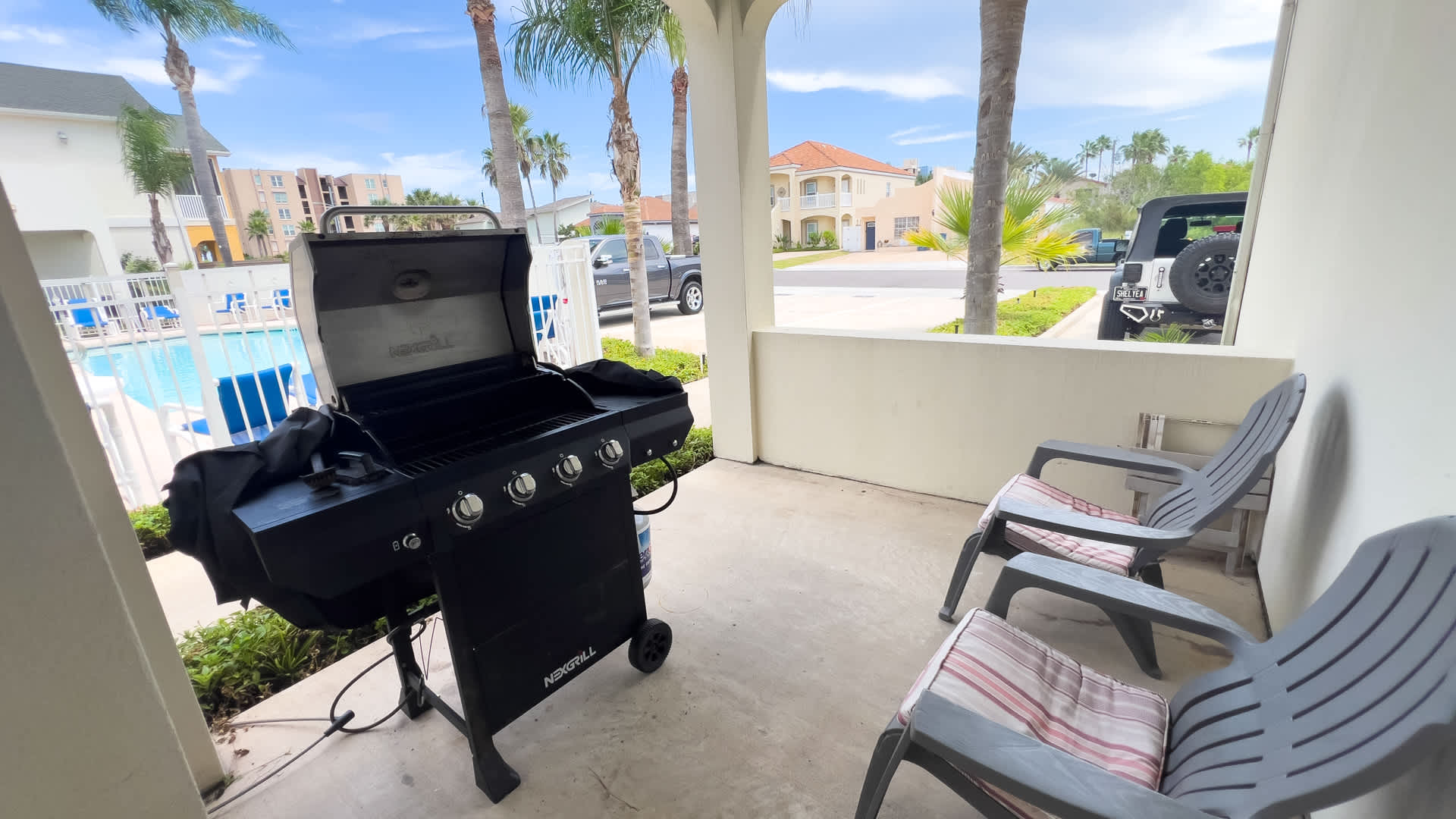 You can walk out to the patio that is just for this condo off the pool - but please not it is not extremely private does have a couple chairs for morning coffee or sunset margaritas. The pool while not heated has sun loungers and is of perfect depth for floating & hanging out, or to wear your kiddos out after a long day at the beach.