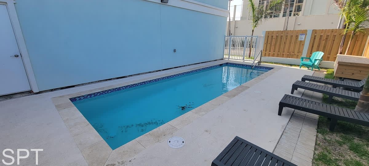 South Padre Trips *Heated Pool* * 2 Levels * New Townhome #3 Description Brand new 2 level townhomes 2 blocks to the beach & across street from bay to fish *3 bedrooms w/1st floor master, 2 xtra bedrooms upstairs + full bath *White quartz/Stainless appliances *BBQ in front. Washer/Dryer in space *Seasonally heated pool *Sleeps 10 *Pet Friendly & 2 parking spaces *Value priced for reasonable luxury *WiFi & Smart TVS throughout Pro-Managed & Cleaned locally by South Padre Trips Please read & agree to all house rules prior to booking About this Space: Thank you for considering our Villas de Laguna at 5100 Laguna Blvd. These brand new side-by-side townhomes feature 2 private levels, with a ground floor living room, fully equipped kitchen, half bath, Master Bedroom with en suite full bath & walk in shower. As there are just 4 brand all new townhomes here, you can expect white quartz counters, stainless appliances, as well a completely open concept kitchen & living room with massive 75” Smart TV & sectional couch to enjoy movies or a football game after a long day at the beach. All furniture is brand new. There is also a smart TV in the master bedroom as well as upstairs in the kids bunkroom. The complex includes 2 off street parking spaces, located directly across the street from the bay & a boat ramp, seasonally heated small pool private to this complex, and a small space in front of your townhome for a small BBQ grill (please bring). If you want to go to the beach, it is less than 2 blocks away from a public beach access point, yet affords you the quiet life bayside. We do allow up to 10 people to stay however, understand a baby or infant is a person, so it is 10 beating hearts in this head count. We do care to describe the bedding ? The master bedroom has a king sized bed, while the 2nd bedroom upstairs has two full beds, and the 3rd bedroom we call the kids bunkroom with 2 built in heavy duty bunk beds each bed is a queen in size. This bunkroom each bunk bed is suitable up to 400 lbs so adults may use. You will find we carefully constructed these so that the two bedrooms are “jack and jill” with the very large full bathroom upstairs meaning you do not need to use a hallway to enter the bathroom. This townhome features excellent tankless water heating system for joyous hot showers in the two walk in shower bathrooms. We also have a full sized stackable washer & dryer upstairs in the hallway area. The pool area is fenced and private, and the pool is heated to 88* November 1 to April 1. We find the two levels offer legit privacy when you have multiple couples or family staying while anyone with a physical impairment can easily have the kitchen, living room, and master bedroom & bathroom on the ground floor. The half bath off the living is perfect if a guest or two wants to use the provided airbed or couch for extra sleeping space. We do provide coffee, creamer, and sweetener + decaf + tea - as well as a starter pack of hand soaps, dish soap, trash bags, 1 roll of paper towels new and starters of toilet paper, non stick cooking spray as well as Salt & Pepper - though not unlimited and not replenished. All towels and linens are also provided - crisp white. Please note this kitchen though fully equipped and stocked with all pots pans dishes etc is not massive nor does it have a dishwasher therefore dishes have to be manually done, It does have full sized washer & dryer upstairs Walk to several bars & restaurants including the Coral Reef (best late night bar on the Island), Kellys Irish Pub (serves food super late), Big Donkey Mexican Cantina, and of course the famous Blackbeards Restaurant for seafood & drinks. You can fish at the end of the street (Polaris) by the way) from shore! While it is not a massive three bedroom private home, you will not find this level of quality that accommodates 10 people at this price. We do allow up to 2 pets, though the property has rules with this – please carefully read all house rules prior to booking prior to booking if you have pets. The occupancy is a strict maximum of 10 as well as max free parking for two vehicles (golf cart included) though there is pretty ample street parking nearby. More details: While we have the best available Internet/wifi from spectrum they are the only provider on the island and up time and coverage can be spotty at times we want you to be aware of that If you can't find the network name SouthPadreTrips it's usually means we had a power outage and when the power comes back on It typically defaults the router to the factory network name and password, which is located on a sticker on top of the router. Generally, if you reboot the router by unplugging it for a few minutes and plugging it back in it will pop up The kitchen is fully equipped ready to go. I have a blender, all utensils, etc. South Padre Trips - Guesty has engaged VacayHome to ensure this listing contains all the information you need and that it is easy for you to book via search engines & online channels. VacayHome is connected directly to the property management system used by South Padre Trips - Guesty which ensures that availability & rates are up-to-date & accurate. When you book, VacayHome processes payment on behalf of South Padre Trips - Guesty and a charge will appear on your statement as "VacayHome". VacayHome will send you a confirmation e-mail that contains all the information you need to prepare for your vacation including arrival instructions. VacayHome has a 24 x 7 team to assist you with any questions or concerns you may have prior to arrival. To access VacayHome, obtain the customer support telephone number or read FAQs, please click on the links at the bottom of this page.