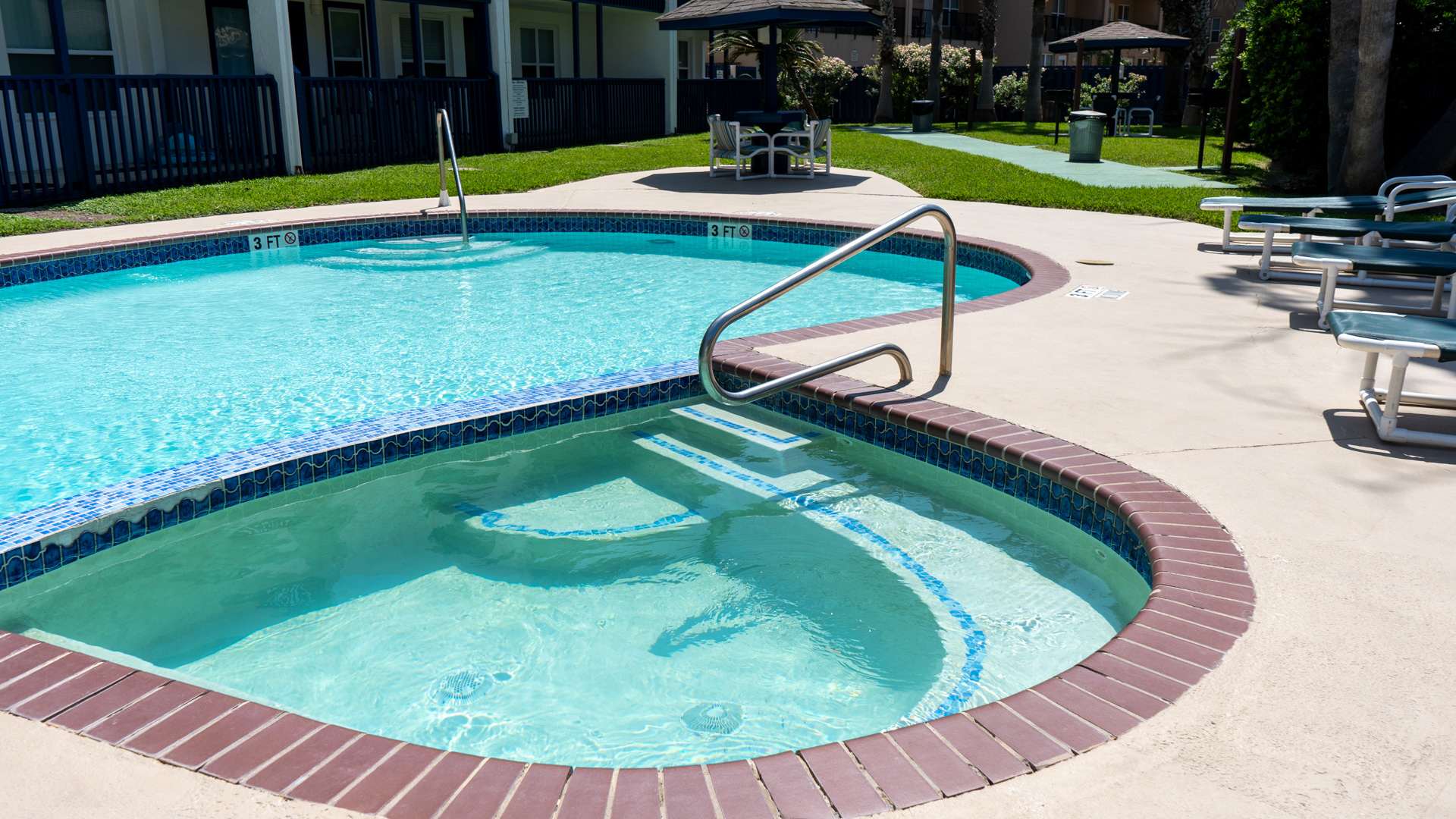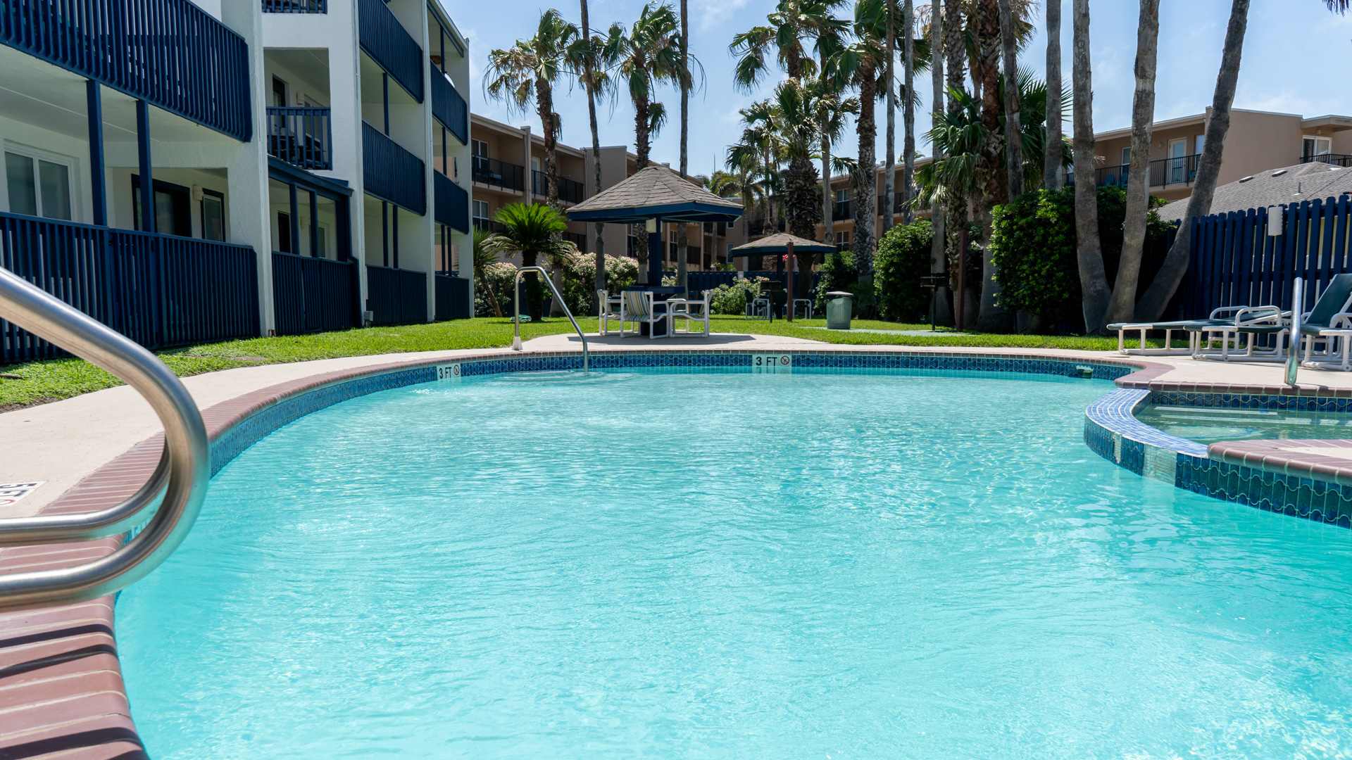 A lovely tropical courtyard with a sparkling pool, picnic areas and BBQ pits invites you to enjoy the warm outdoors. Grassy areas are perfect for your outdoor games and the spacious pool deck provides plenty of room for lounging by the pool