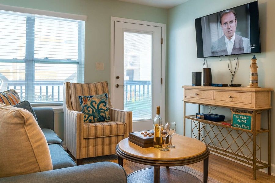 Your cozy accommodation beckons relaxation with a soothing pastel pallet, comfortable beds with sleeping for up to 6 guests and a kitchen with modern appliances that is fully stocked with the essentials you'll need to prepare your favorite meals.