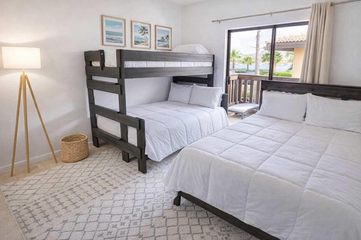 One of the great features that is quite rare for a 1 bedroom condo is the great amount of sleeping space. The 1 bedroom has a stand alone full sized bed, plus a bunk bed that is a twin over full. In the living room, there is a pull out couch as a full sized bed. We do also provide a full sized airbed (do bring extra bedding though if you wish to use)