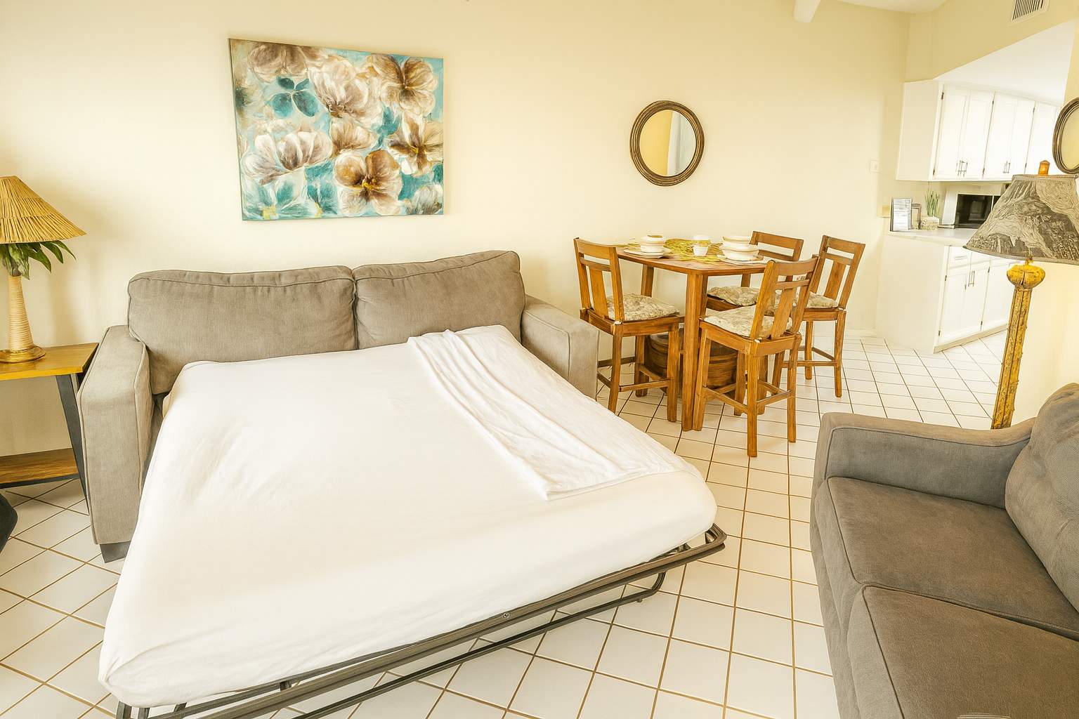 This condo comes with a fully stocked kitchen, WIFI internet and sleeping accommodations for 6. The master bedroom entails 1 queen bed and the guest bedroom entails 2 twins. There is a sofa sleepers in the living room which completes the accommodation for 6. We do provide an airbed as well. Please bring extra bedding if you plan on using the sleeper sofa and/or airbed.