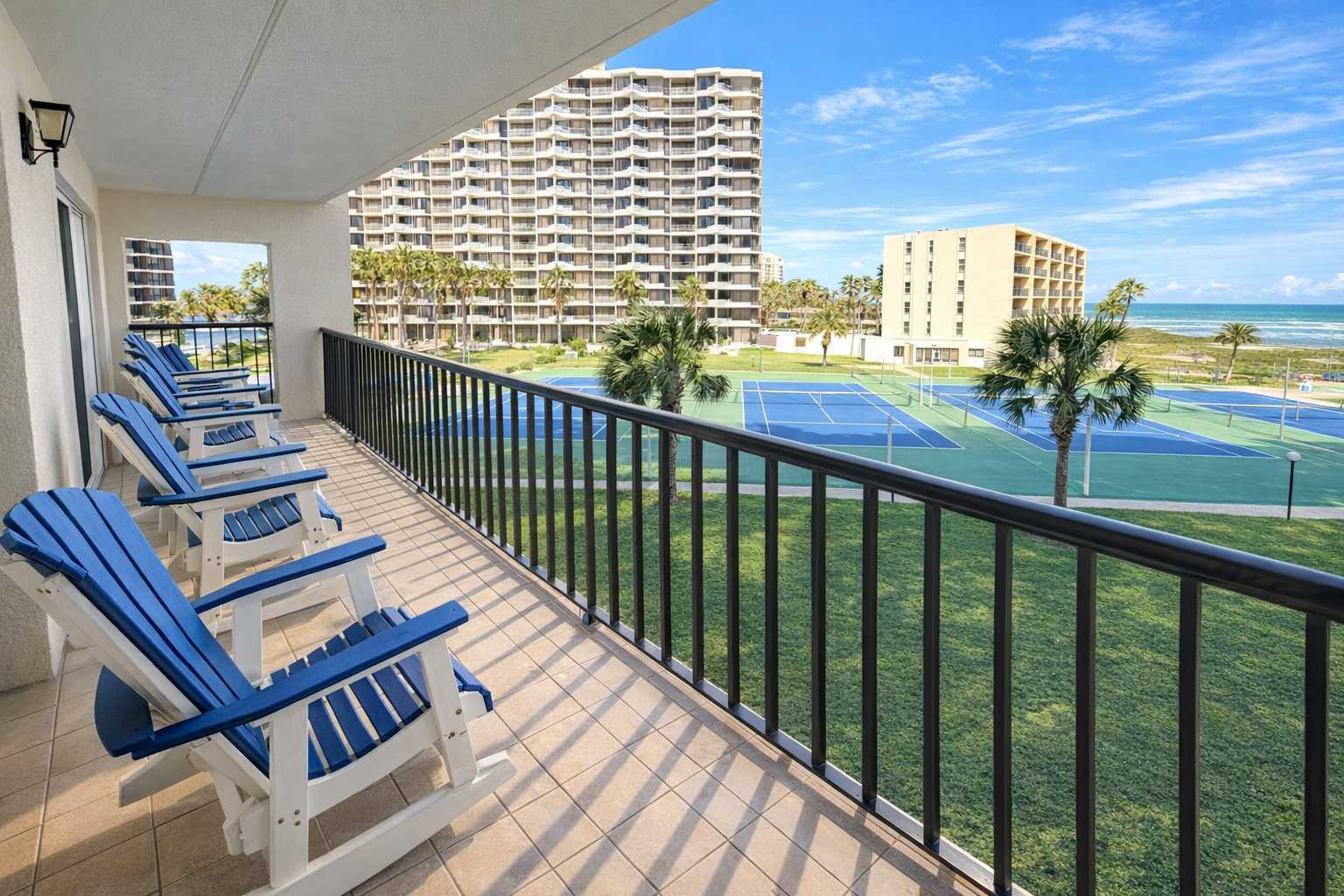 Saida is the largest condo complex on the island, consisting of 5 towers beachfront, with 3 pools one of which is heated seasonally - plus 3 hot tubs heated, pickleball/tennis courts (private to this complex guests) and a sometimes open on weekends bar & grill. There is no other condo complex this resort like on South Padre Island.