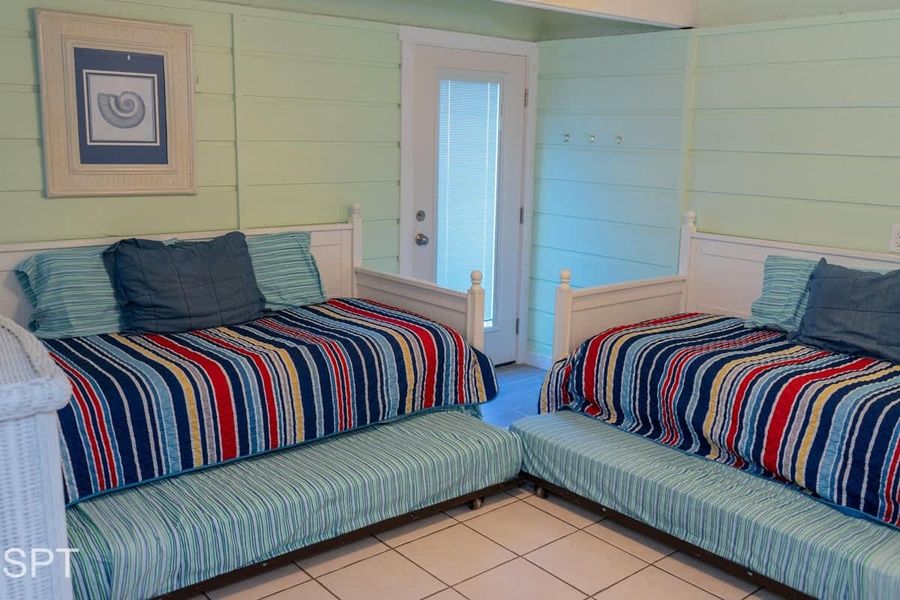 The beach is very nearby, less than half a block. Again, This 3 bedroom is part of a duplex, and the front space can be rented alongside this one for groups up to 16 people.