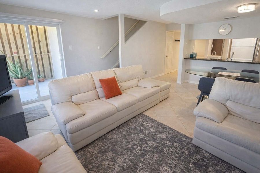 * Much remodeling done *Unique 2 level - kitchen/living/patio down + 1/2 bath * - upstairs 2 bedroom / 2 baths + laundry + patio in master *1 block to beach. Max 8 *Property has a good pool and cool 2nd floor sundeck *1 off street parking space * Bedding is 2 double beds as bunks upstairs plus a king. We provide a queen sized airbed as well *Kitchen is fully equipped for ez family meals. Open concept kitchen to living room Please read & agree to ALL house rules prior to booking This is a rare two level condo on the 2nd floor for less noise from above. This condo has all hard surface floors. Downstairs as you walk in you will see a half bath off the fully equipped kitchen that opens to the living room & patio. The stairwell will lead you up to the master bedroom with an en suite full bathroom and patio overlooking the lawn below. In the hallway is a stackable washer & dryer.that is very handy after the beach. The 2nd bedroom features adult sized bunk beds with double sized mattresses. There is a main bathroom up stairs as well. We do provide a queen sized airbed for extra sleeping space - please bring bedding however. Additionally there is a small couch & larger coach but they are not pull outs. There is a maximum of 8 people allowed, that includes infants and children The privacy of having 2 levels is awesome if you have any night owls that want to stay up while some can catch some zzzs or teens that want to stay up late downstairs etc Plus, this is definitely one of the largest 2 bedroom condos you will find at 1200 sq feet on South Padre Island The Habitat complex where this unit #25 is located is at 104 E Parade Dr, located just under a block to the public beach & access.point. There is a year round pool that is perfect for kids as well as a 2nd floor sundeck for adults. The complex has one drawback in that there is one off street parking space that provides enough space for 2 cars back to back or 1 larger truck. There is no guest parking here unfortunately. While we have the best available Internet/wifi from spectrum they are the only provider on the island and up time and coverage can be spotty at times we want you to be aware of that if you can't find the network name SouthPadreTrips it's usually means we had a power outage and when the power comes back on It typically defaults the router to the factory network name and password, which is located on a sticker on top of the router. Generally, if you reboot the router by unplugging it for a few minutes and plugging it back in it will pop up The condo has free parking, air conditioning, and WIFI by spectrum. Please note internet can be spotty on the Island though we have the highest speed/quality available. This condo is professionally managed by South Padre Trips located at 2600 Padre Blvd. We do provide a starter pack of paper towels, toilet paper, dishwasher pods and trash bags as well as basic bathroom toiletries though they are not unlimited nor replenished. Bring extras if you have a larger group or a full sized family. For those stays 3 nights or more, we have free linen and towel exchange at our office. Our City of South Padre Island Short Term rental license is available upon request. Please message me for our active military as well as off season discounts Sept 2 to Dec 22nd This property and listing does require a few things after the booking is made on Airbnb: 1.) You must additionally assure against damages by either agreeing to pay a 1 time $59 damage coverage protection plan fee (not refundable) to assure against damages OR You may choose to do a fully refundable $500 damage deposit. You must do one or the other to book this property and stay here We bill for either via the Airbnb resolution center prior to arrival. Again, these are fully disclosed for guest convenience as many HOAs are very strict on coverage plans. Our listing again, REQUIRES that the primary tenant is 25 years of age or older to book & must be present at check in. You MUST contact us prior to booking if you are not 25 - no exceptions - though it IS POSSIBLE sometimes with additional requirements. 2.) Please take note we do require an E sign rental agreement with an attached photo ID after booking is made, We require to maintain our City of South Padre Island Rental License a signed rental agreement you may esign by docusign prior to arrival to be checked in with door code therefore you must provide your email address. You must attach a pic of your photo ID OR upload to Airbnb messaging to age verify as 25 years of age or older. If you are not 25, we do NOT allow you to book unless you contact us first :) though it may be possible with additional requirements Please read & agree to all house rules prior to booking - this is not a party property & is designed for families in mind or those seeking a quiet complex. Property is professionally managed by local South Padre Trips at 2600 Padre Blvd. South Padre Trips - Guesty has engaged VacayHome to ensure this listing contains all the information you need and that it is easy for you to book via search engines & online channels. VacayHome is connected directly to the property management system used by South Padre Trips - Guesty which ensures that availability & rates are up-to-date & accurate. When you book, VacayHome processes payment on behalf of South Padre Trips - Guesty and a charge will appear on your statement as "VacayHome". VacayHome will send you a confirmation e-mail that contains all the information you need to prepare for your vacation including arrival instructions. VacayHome has a 24 x 7 team to assist you with any questions or concerns you may have prior to arrival. To access VacayHome, obtain the customer support telephone number or read FAQs, please click on the links at the bottom of this page.