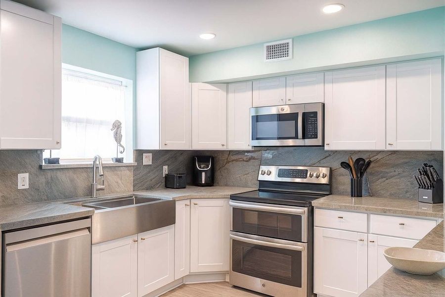 Incredible remodel 100% - 4 bedroom waterfront in Port Isabel w/2 boat slips. Expansive views down channel. Fish on the dock *Bedding is 3 kings, 2 queens, 3 singles, 2 fold down couches + airbed 16 folks max *2500+ sq ft w/2 Kitchens on 3 levels. 1 ground floor bedroom as mother-in-law suite *3 Massive decks, dock, Green Egg BBQ grill *Space X launchview from rooftop patio *Max 4 vehicles / Super clean pool / Wifi. 15 mins to the beach Please read & review ALL house rules prior to booking About the Space: Blizzard’s LightHouse is located waterfront on the fingers in Port Isabel, just minutes from the beaches of South Padre Island This newly & fully remodeled 4 + bedroom home w/4 baths that spans 3 levels, has a private pool, multiple “over the water decks” + plus a patio on every level in addition to a rooftop patio with views of SpaceX Launches or a spectacular sunset. Ideally situated for a couple of families to split and for fishing enthusiasts alike, you will have the use of 2 boat slips, one shallow water and one deeper water. While no lift is provided, being able to put your boat or jet skis in at the nearby at the White Sands marina or the boat ramp 2 blocks away and leave it in is much more convenient. Please note we do not provide bumpers nor boat lifts so come somewhat prepared if you do have a boat. Inquire on truck/trailer parking as none is provided on property. No boat? No Problem! Fish from the docks - especially at night the fishing can be good on live bait as we do have flood lights that automatically come on. Enjoy views up and down the channel, the crystal clean pool, or BBQ (bring charcoal) right off the water with the “Green Egg” BBQ pit provided. There are a max of 4 vehicles allowed, with 3 off the street and 1 on, for a total of 16 people allowed. In the total persons count we do count infants and children, FYI. The ground floor has a completely separate entrance off the pool with a queen bed, fold down couch & side bed, plus its own efficiency kitchen and full bathroom. As you enter the grand foyer, you will be greeted by 2 staircases up, with the 2nd floor featuring 2 bedrooms and 2 full bathrooms. The open concept kitchen with granite counters and stainless appliances features all the pots, pans, dishes, etc you need to eat every meal if you so choose right at the property for both convenience and to save money. The master suite features a soaking tub and dual head shower with a private patio overlooking the water. If you walk to the rooftop level, you get a great view of all of Port Isabel, channels, and South Padre Island. The exact bedding is two king beds, three queens, two singles, and two smaller size couches that full down into beds. We do also provide a queen size airbed. Please bring extra bedding if you plan on using the fold down couches or the airbed. Outside you will enjoy the pool that flows right to a large deck with patio, the docks, the green egg bbq & areas for sunbathing. All towels & linens are provided FYI. There is just the one bedroom that does not require stairs While this home has WiFi if you have some work to get done, the internet is less than perfect sometimes so plan accordingly. Please inquire about off season discounts Sept 15 to Dec 15 for stay over 4 nights. We do have active military as well as football coach discounts - just ask before you book please not after :) Property is professionally managed by local South Padre Island Trips at 2600 Padre Blvd with an office open 7 days per week 9 am to 5 pm. We do offer free linen exchange for stays over 3 nights. You must read & agree to ALL house rules prior to booking - failing to do so is not a reason for a cancellation nor refund request so please review :) The max occupancy is 16 people and again, babies & infants are considered in this head count. A max of 4 full sized vehicles are allowed and that includes a golf cart if you park extra cars or on the side of the street you will get towed at your own expense. There can be street parking but it is not allowed to park in front of anyone’s mail box. We provide an electronic code to enter the property prior to 3 pm day of check in to the number on file, not before. Check out is 11 am You must have completed the E signature rental agreement and attached a photo of your picture ID, read the house rules. If you are not 25 years of age you MUST contact us prior to booking to fulfill possible additional requirements of an additional refundable damage deposit. This is not a party house. We will not provide door code for entry without the digital rental agreement being completed as well as the uploaded photo ID - these being done nor will we offer a refund for not agreeing to do this just to clarify. South Padre Trips - Guesty has engaged VacayHome to ensure this listing contains all the information you need and that it is easy for you to book via search engines & online channels. VacayHome is connected directly to the property management system used by South Padre Trips - Guesty which ensures that availability & rates are up-to-date & accurate. When you book, VacayHome processes payment on behalf of South Padre Trips - Guesty and a charge will appear on your statement as "VacayHome". VacayHome will send you a confirmation e-mail that contains all the information you need to prepare for your vacation including arrival instructions. VacayHome has a 24 x 7 team to assist you with any questions or concerns you may have prior to arrival. To access VacayHome, obtain the customer support telephone number or read FAQs, please click on the links at the bottom of this page.