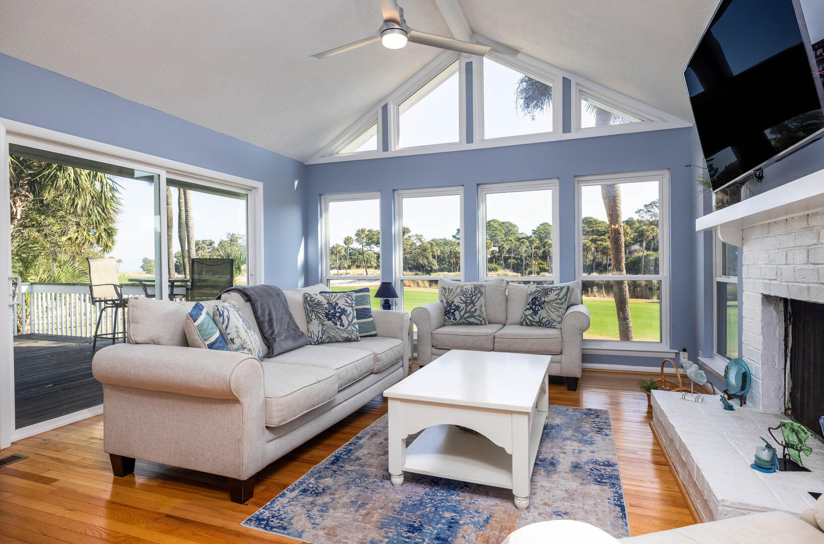 Outside, enjoy the island's natural beauty—complete with visits from local wildlife. A fenced yard makes the home pet-friendly (with a fee), with easy access from the back deck and a grilling patio perfect for family barbecues.
