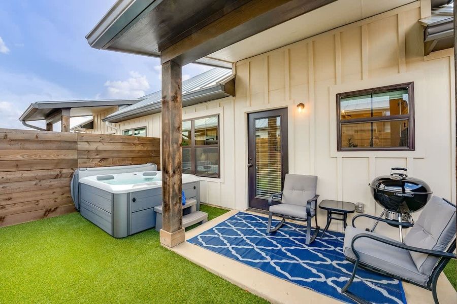After exploring charming downtown or indulging in a wine tasting adventure, escape to the outdoor oasis of the backyard. Here, you'll discover the hot tub, offering soothing warmth and bubbling water for the ultimate relaxation. The patio also provides a perfect setting with a table and seating for two, ideal for enjoying a morning cup of coffee or evening cocktails.