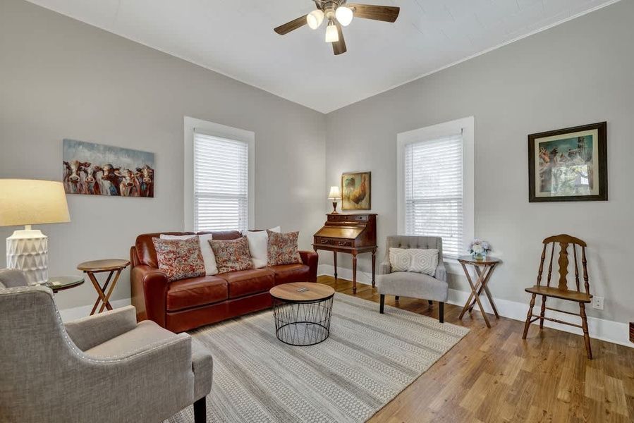 Step into Austin Haus and experience the vibrant culture and history of this delightful residence situated close to the heart of downtown! Discover restaurants, boutiques, wine tasting rooms, and cozy coffee shops just five minutes away. Unwind in the backyard, for leisurely activities such as a friendly game of cornhole or an evening roasting marshmallows around the firepit. And, to make your stay even more enjoyable, feel free to bring your furry companions along, as we warmly welcome pets!